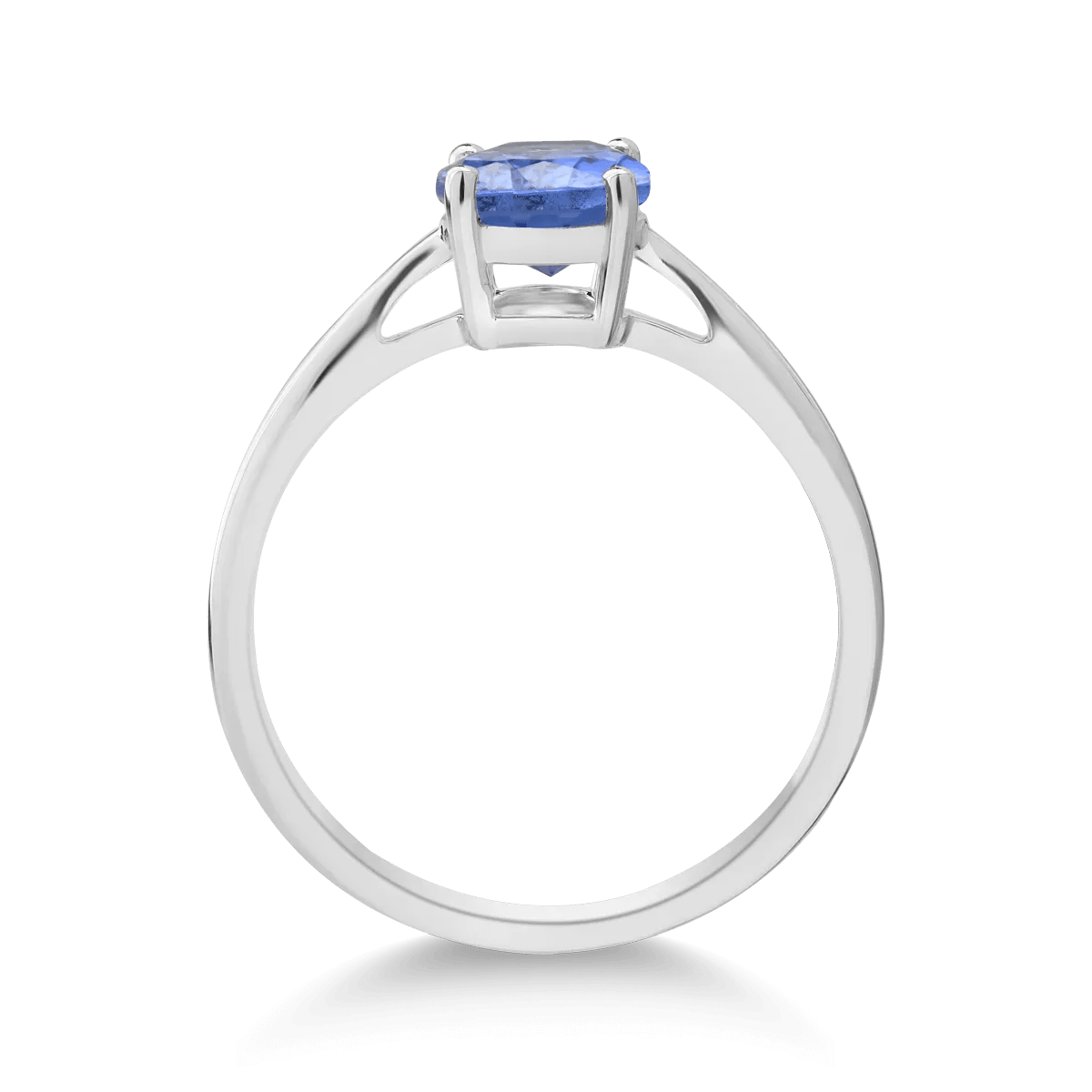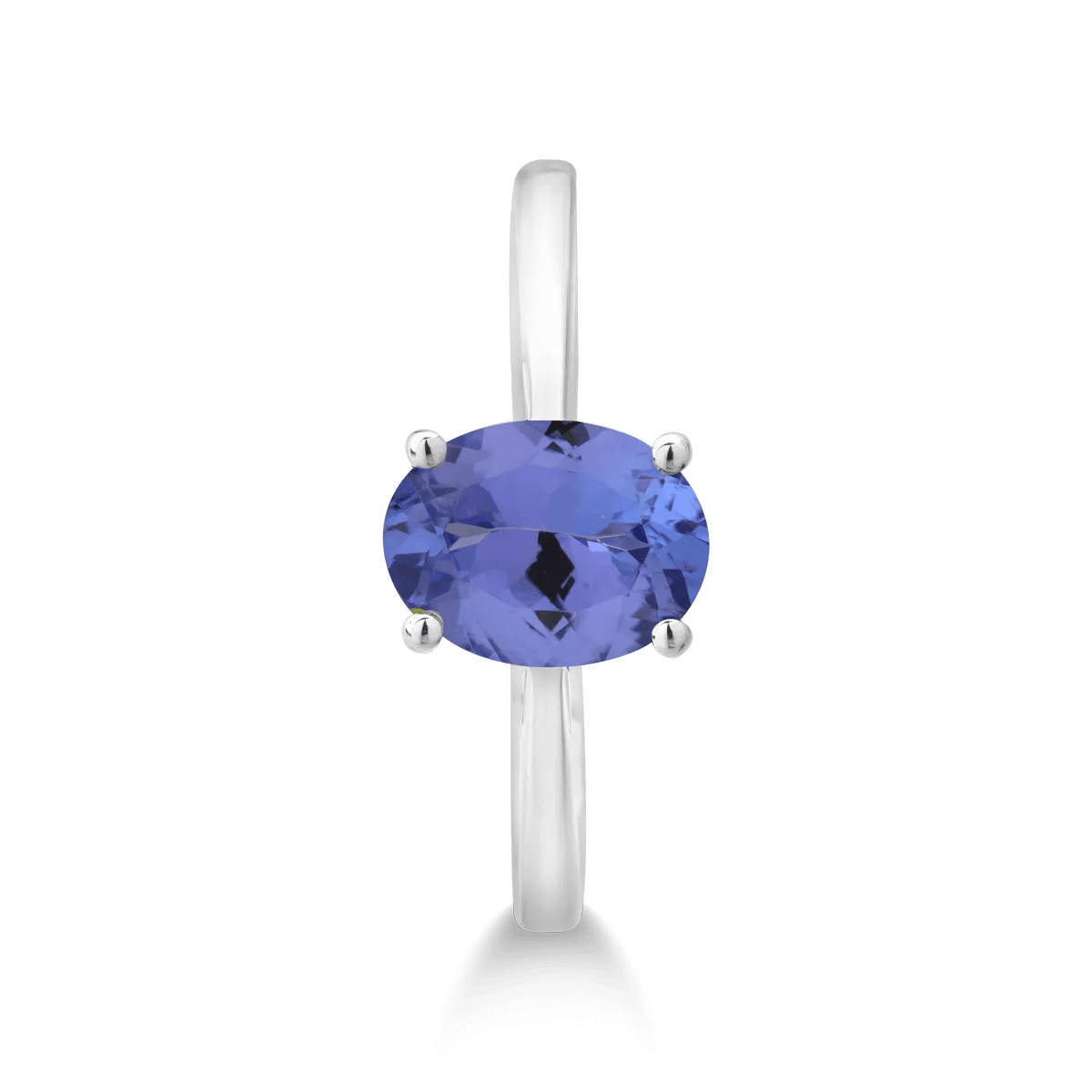 Acest inel din aur alb este înfrumusețat cu un tanzanit oval de 1.1ct, ce se remarcă prin tonuri dinamice de albastru și reflexe violet. Taietura ovala pune în valoare strălucirea delicată a pietrei, aducând un aer rafinat din fiecare unghi.