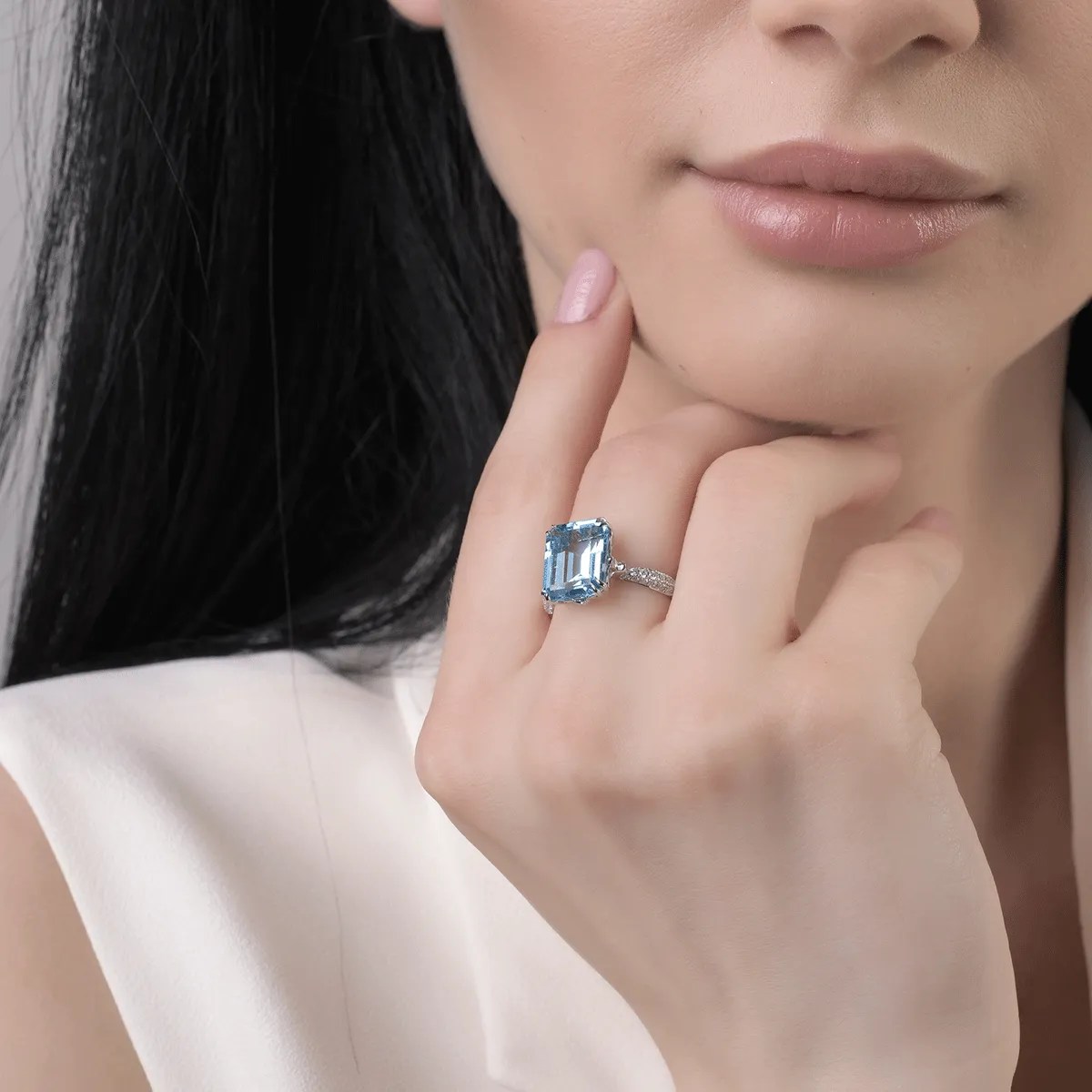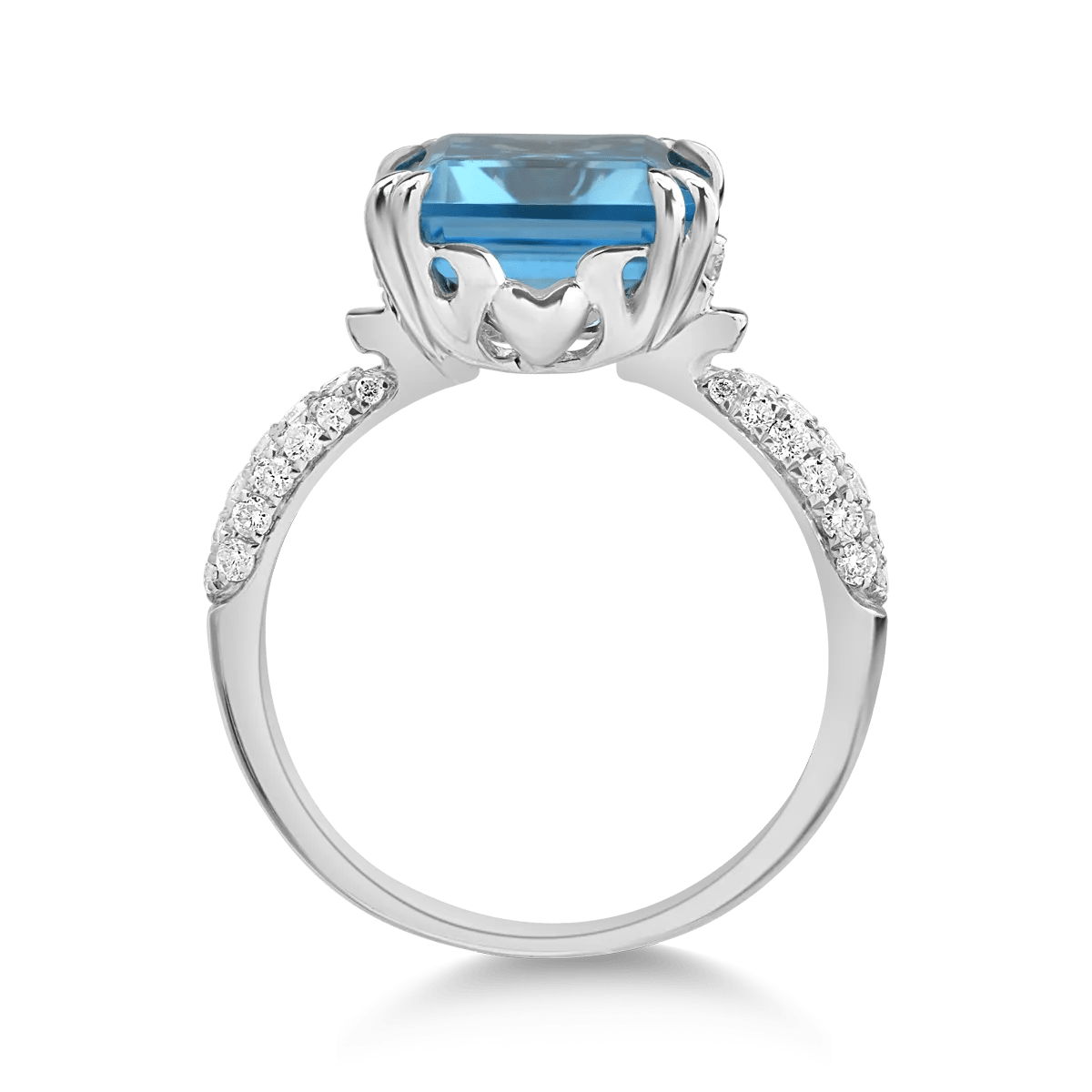 Un inel modern și rafinat, realizat din aur alb, cu un topaz albastru impresionant de 7.2ct și diamante de 0.3ct. Oferă unicitate ținutelor tale prin feminitate și atitudine. Descoperă-te prin fiecare piesă TEILOR care te cucerește.