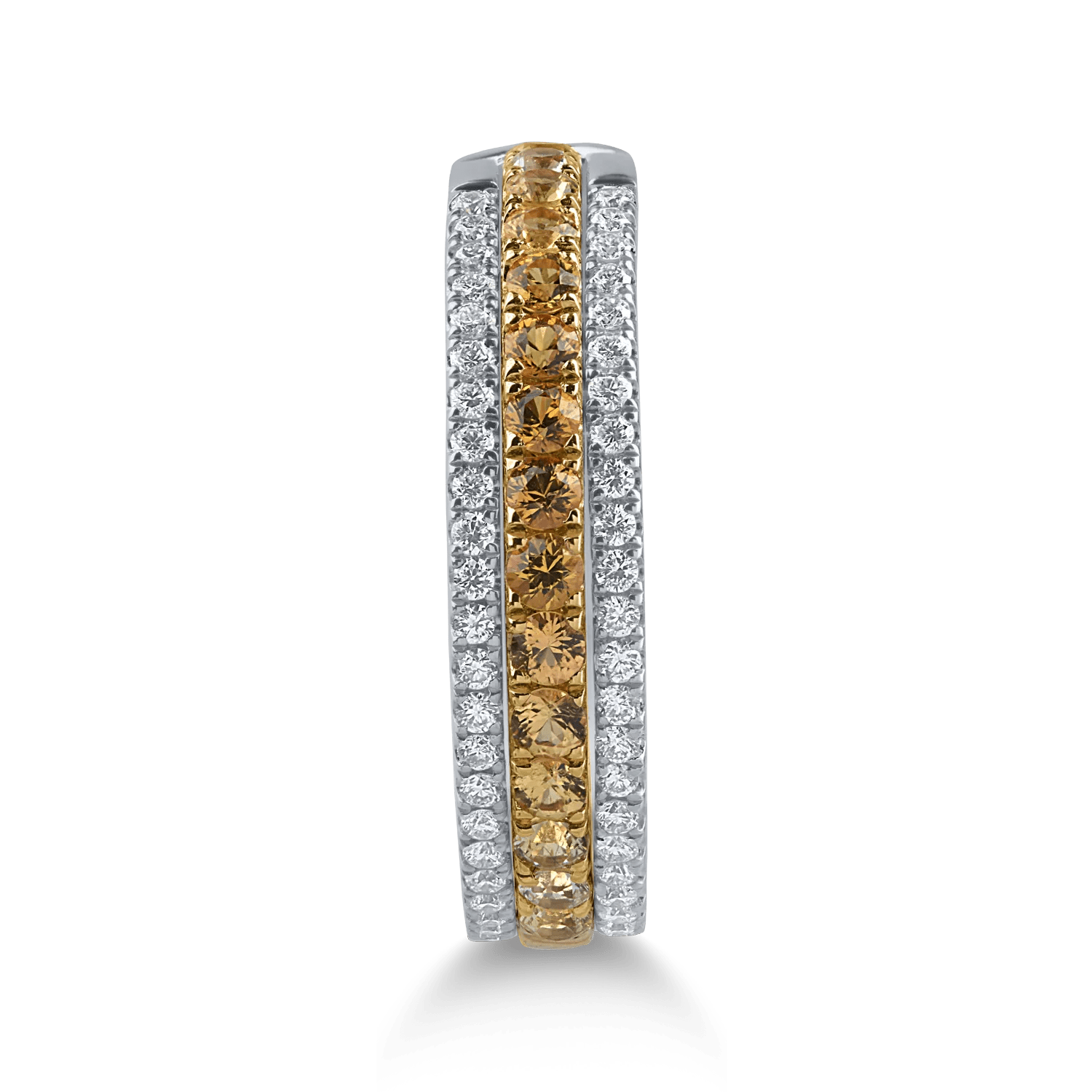 Acest inel din aur alb-galben este o bijuterie care atrage instant atenția. Dotat cu diamante galbene de 0.46ct și diamante transparente de 0.24ct, inelul este perfect pentru un stil modern și rafinat. Designul său unic permite purtarea în două moduri, adăugând versatilitate oricărei ținute.
