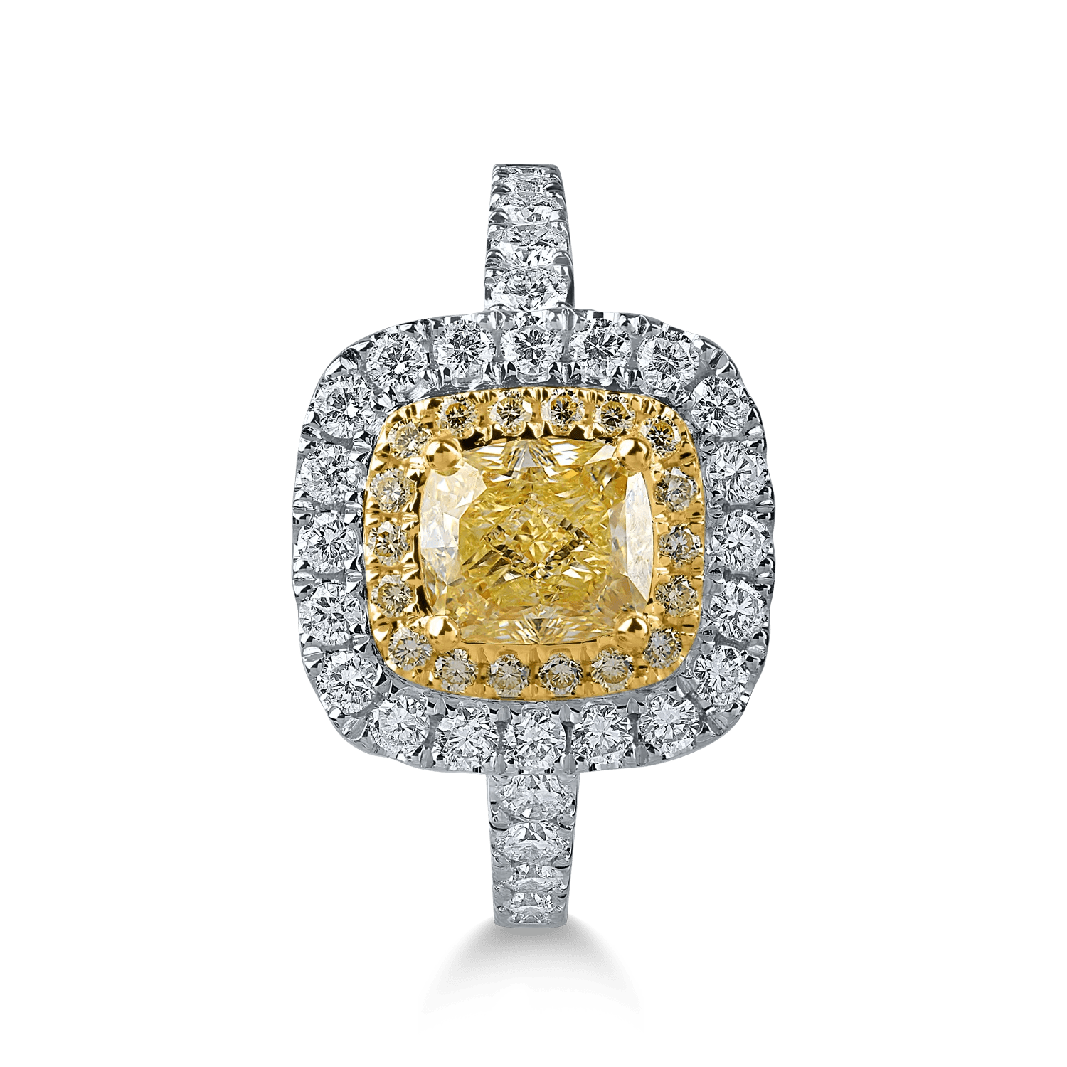 Acest inel din aur alb-galben, împodobit cu diamante galbene de 1.15ct și diamante transparente de 0.66ct, captează eleganța modernă. Contrastul dintre tonurile de aur și strălucirea diamantelor conferă acestei bijuterii un aer sofisticat, potrivit atât pentru zi, cât și pentru seară. Fiecare detaliu reflectă pasiunea și măiestria cu care a fost creat.