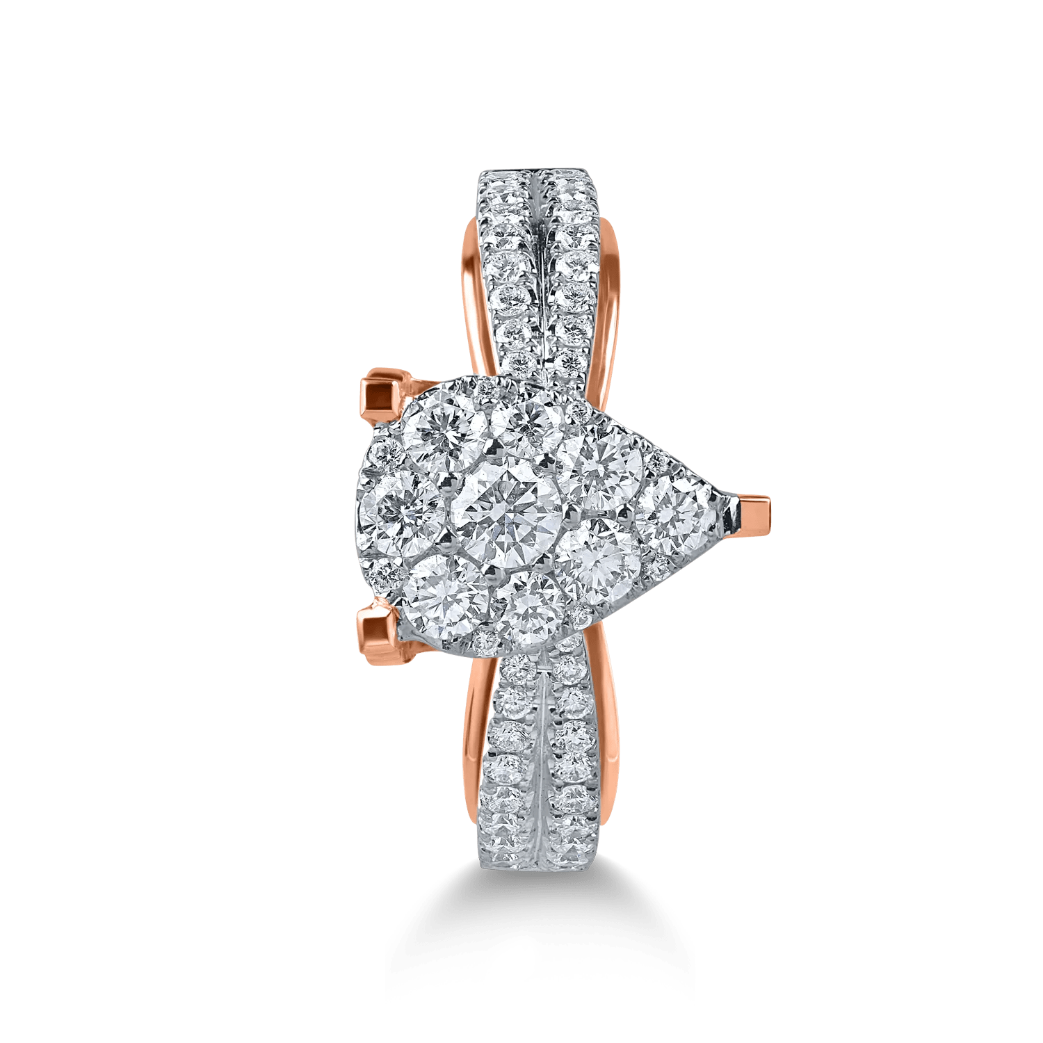 Încununează dragostea cu acest inel minunat de logodnă din aur alb-roz, decorat cu diamante de 0.8ct. Designul său simplu și elegant păstrează o frumusețe atemporală, devenind un simbol al unei legături profunde.