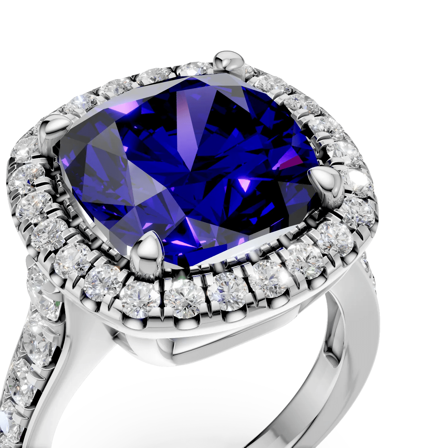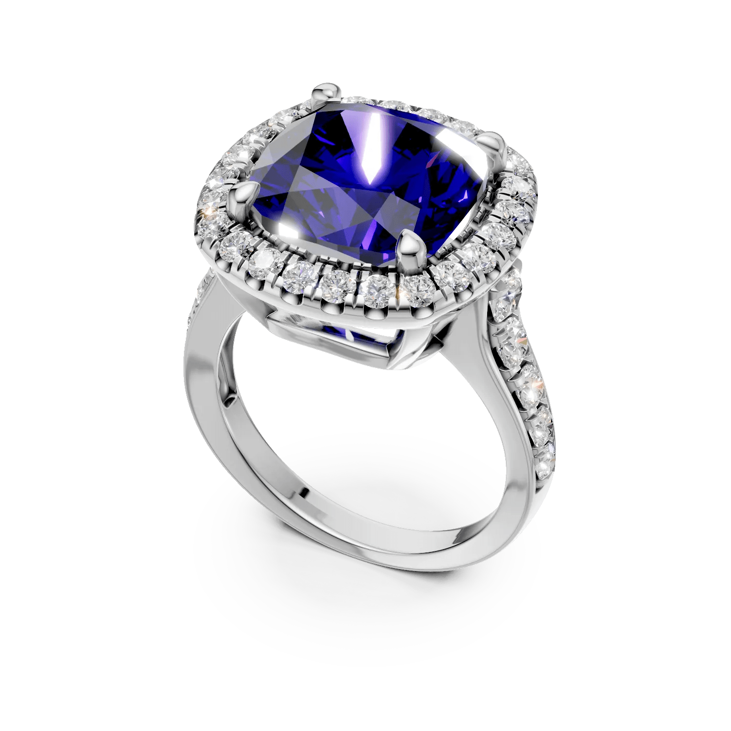 Acest inel din aur alb surprinde prin combinația sa de modernitate și eleganță, fiind decorat cu un tanzanit de 9ct tăiat rectangular și diamante de 1.4ct. Tanzanitul, cu nuanța sa violet-albastră, este încadrat de diamante care aduc o strălucire aparte. Forma rectangulară a tanzanitului oferă o notă arhitecturală, îmbinând rafinamentul cu forța.