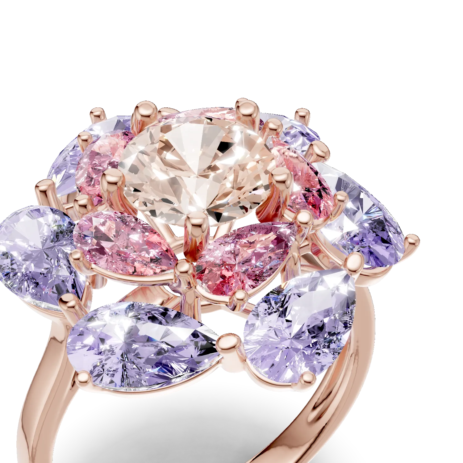 Acest inel din aur roz, decorat cu pietre semiprețioase de 6.07ct și un design floral, aduce un plus de modernitate și eleganță ținutelor tale. Potrivit pentru diverse ocazii și stiluri, completează-ți colecția cu această bijuterie aparte.