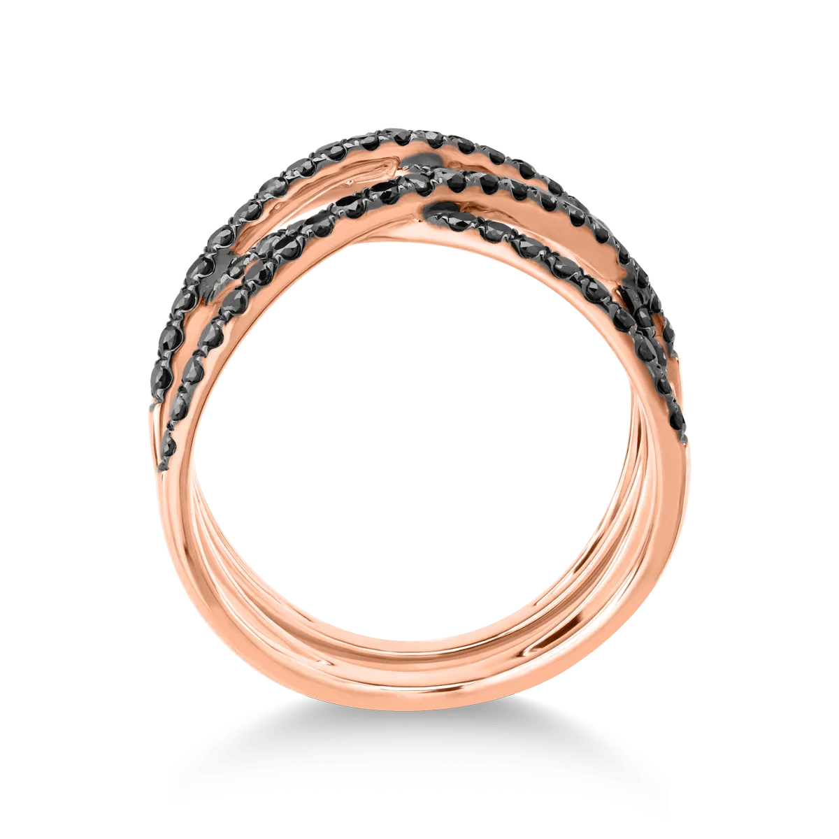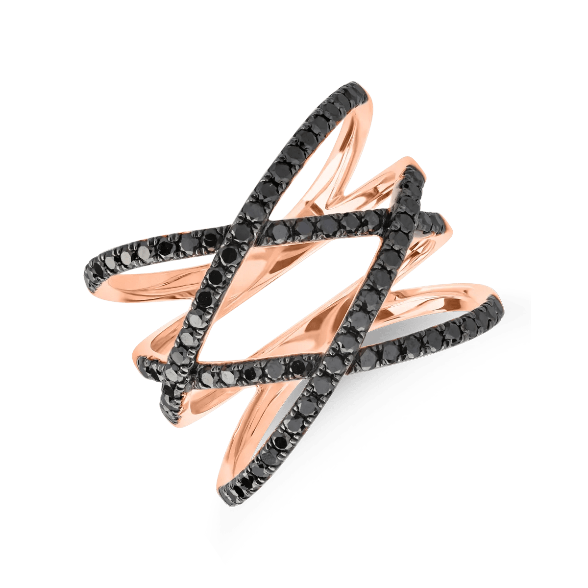 Acest inel deosebit din aur roz, împodobit cu diamante negre de 0.8ct în microsetting, îți deschide porțile către eleganță și stil. Designul său unic completează perfect personalitatea ta vibrantă.