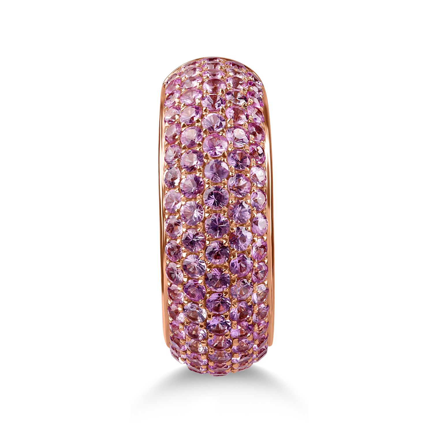 Inelul din aur roz, încrustat cu safire roz de 2.4ct, impresionează prin designul său rafinat și elegant. Acest accesoriu chic completează perfect ținuta și evidențiază grația naturală.
