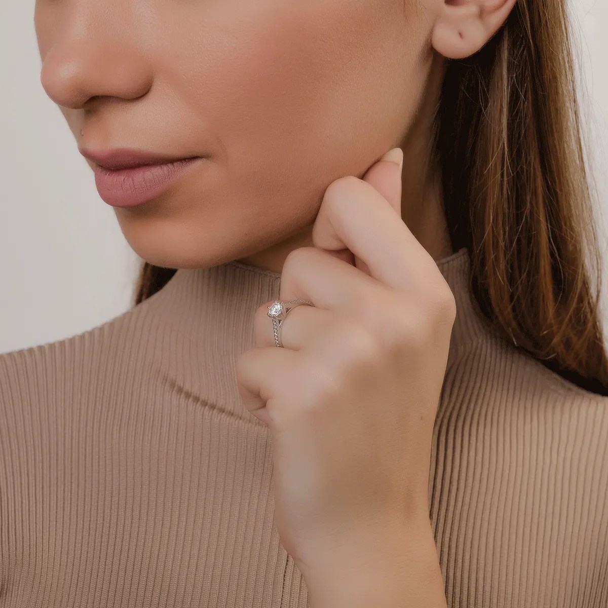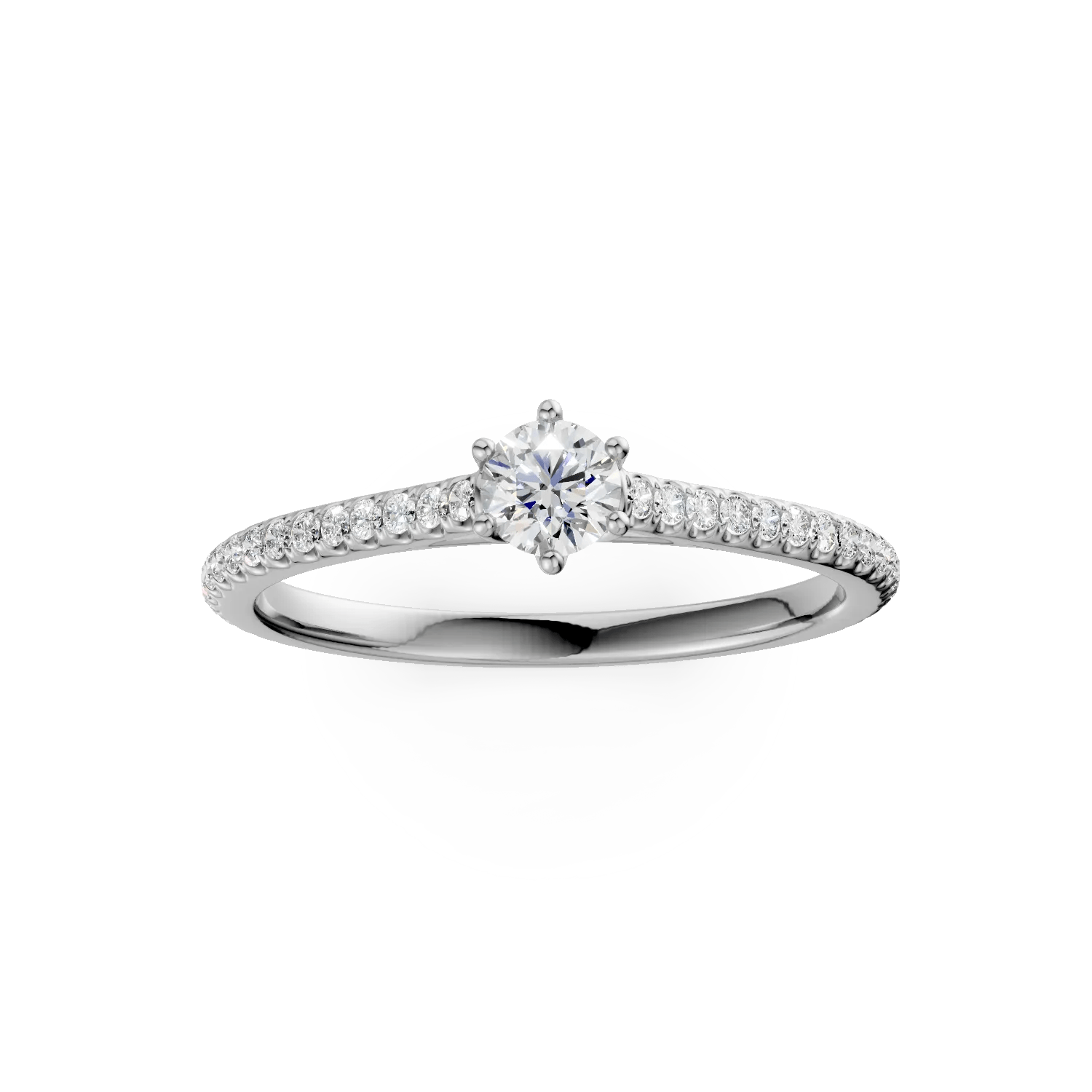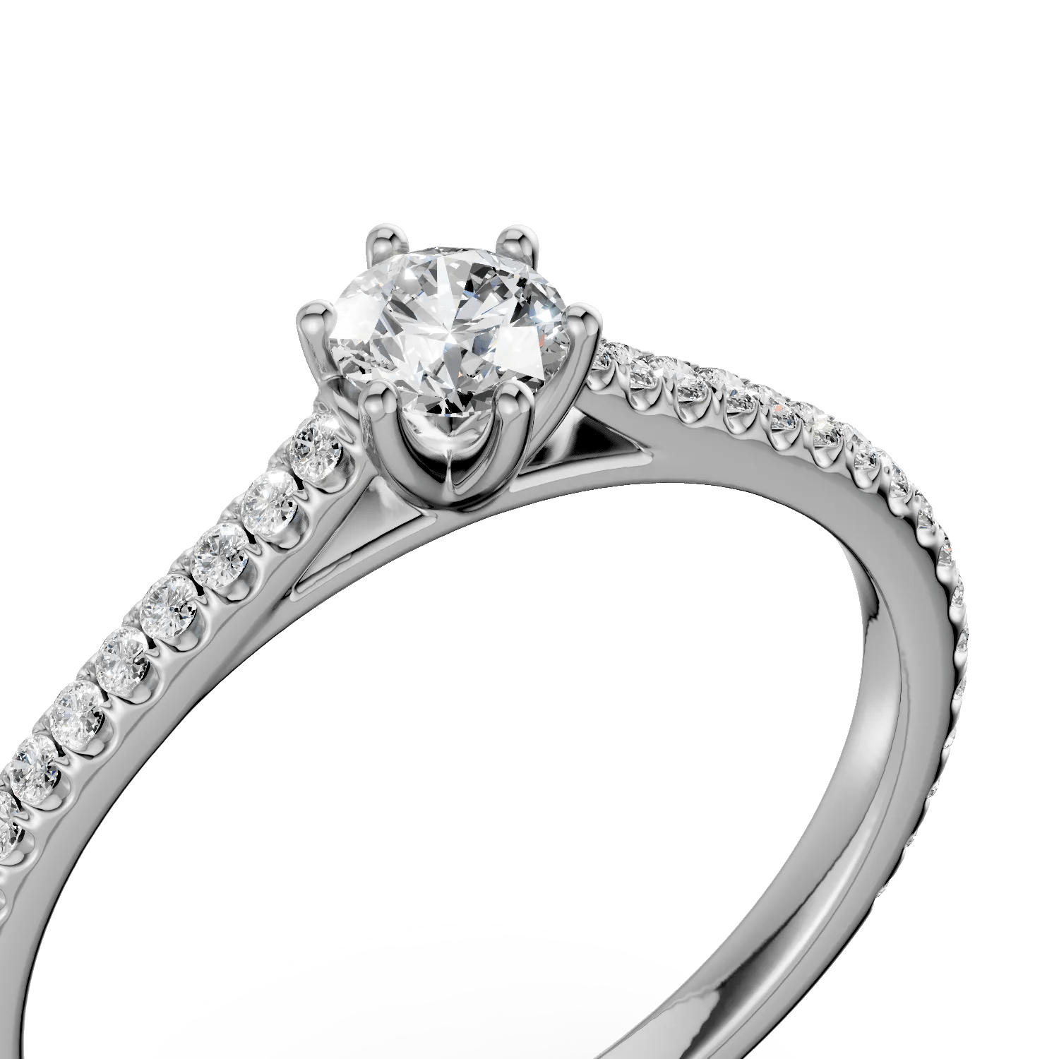 Detaliile fine ale monturii evidențiază elegant jocul de lumini al diamantelor, acompaniind momentele esențiale ale iubirii.