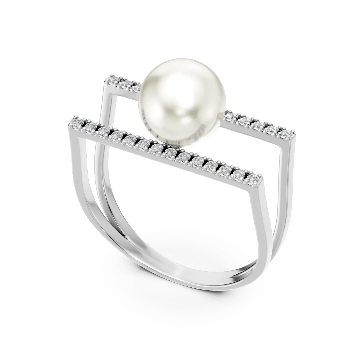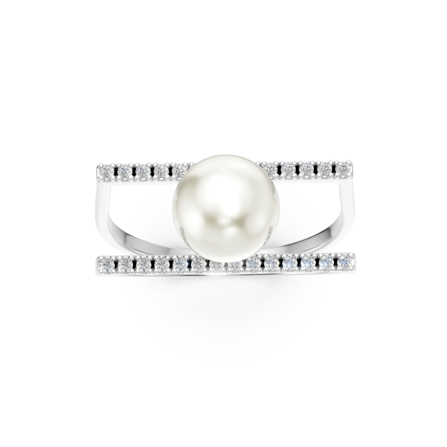 Alege un inel dublu din aur alb, decorat cu o perlă sintetică și zirconii, ideal pentru orice ținută. Acest accesoriu vine de la TEILOR, cunoscut pentru creațiile sale atemporale și detalii impecabile.