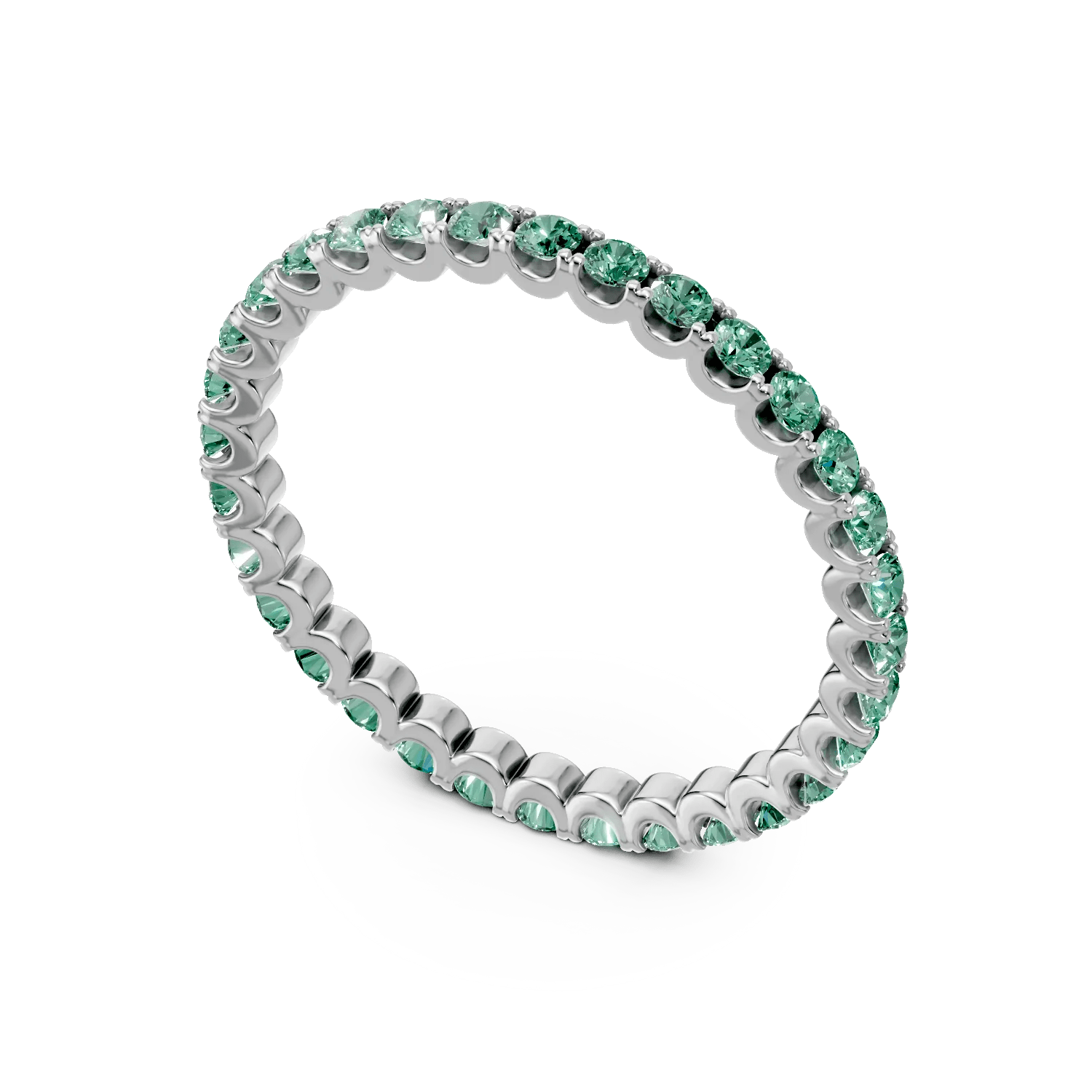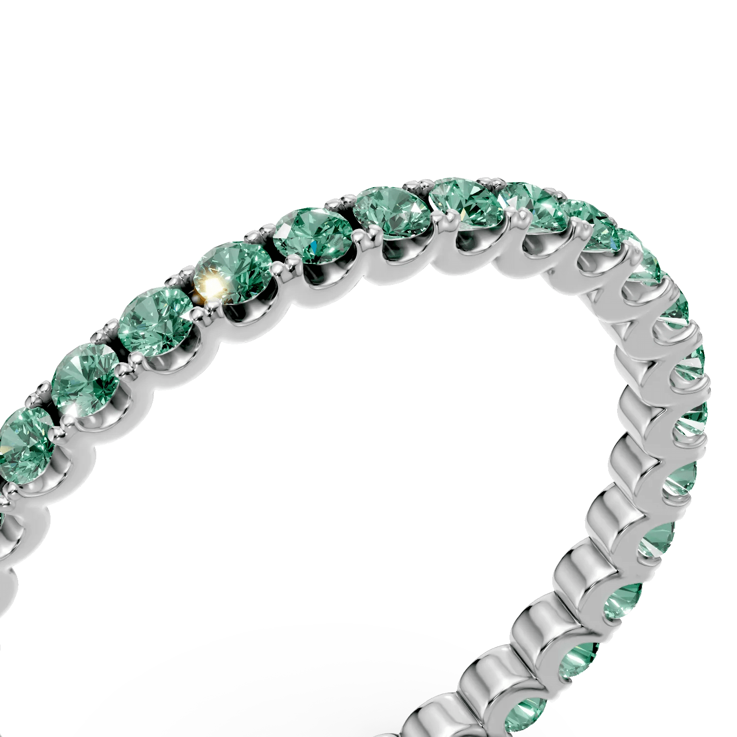 Acest inel eternity din aur alb, împodobit cu smaralde de 0.4ct, este creat cu o atenție deosebită la detalii și pasiune. Frumusețea aurului alb se combină armonios cu smaraldele, creând o bijuterie cu un design elegant și atemporal.