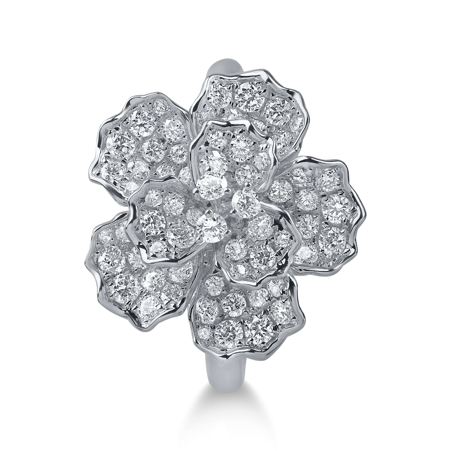 Acest inel rafinat din aur alb cu diamante microsetting de 1ct adaugă un plus de originalitate ținutelor tale. Stilul său modern te va inspira să te exprimi în diverse moduri.