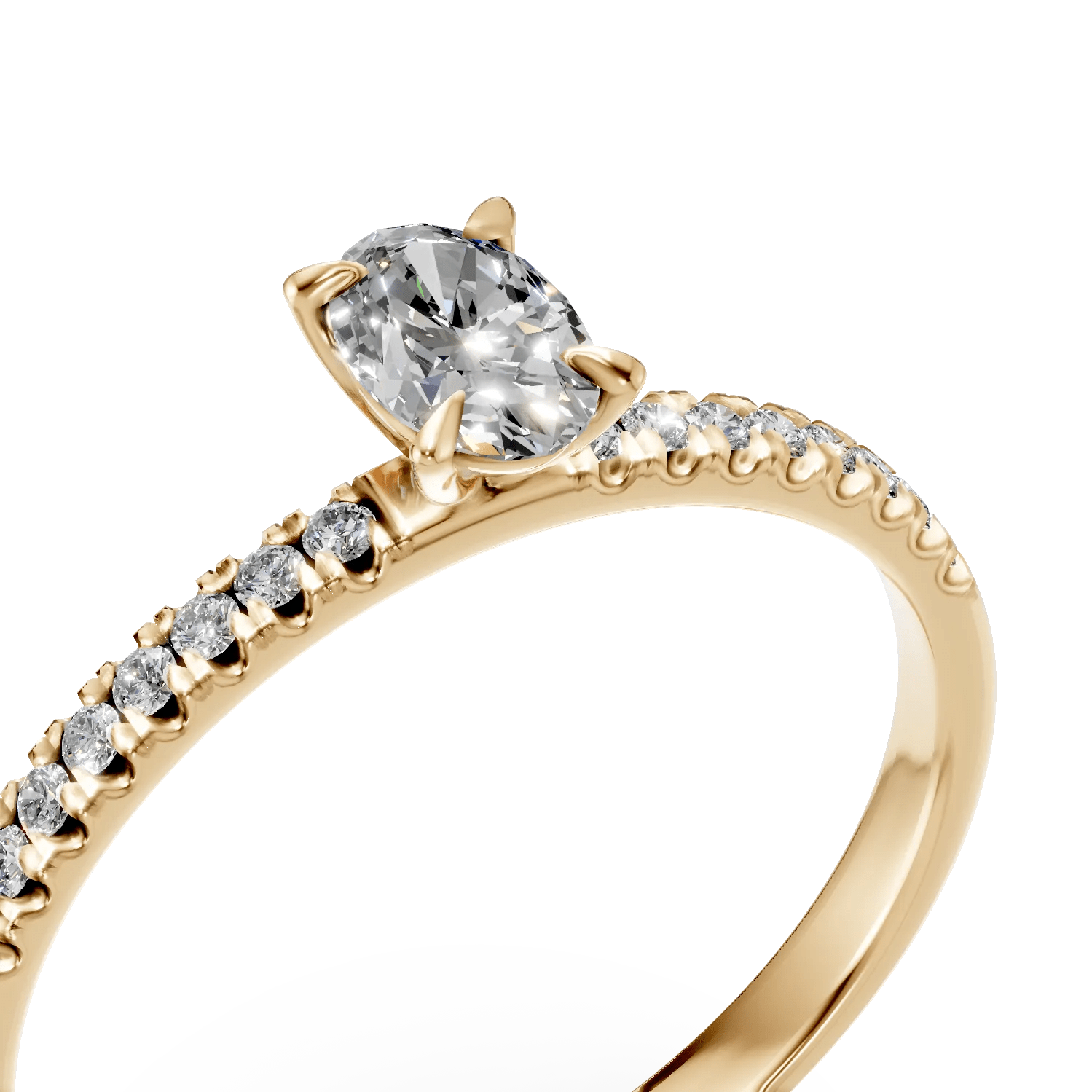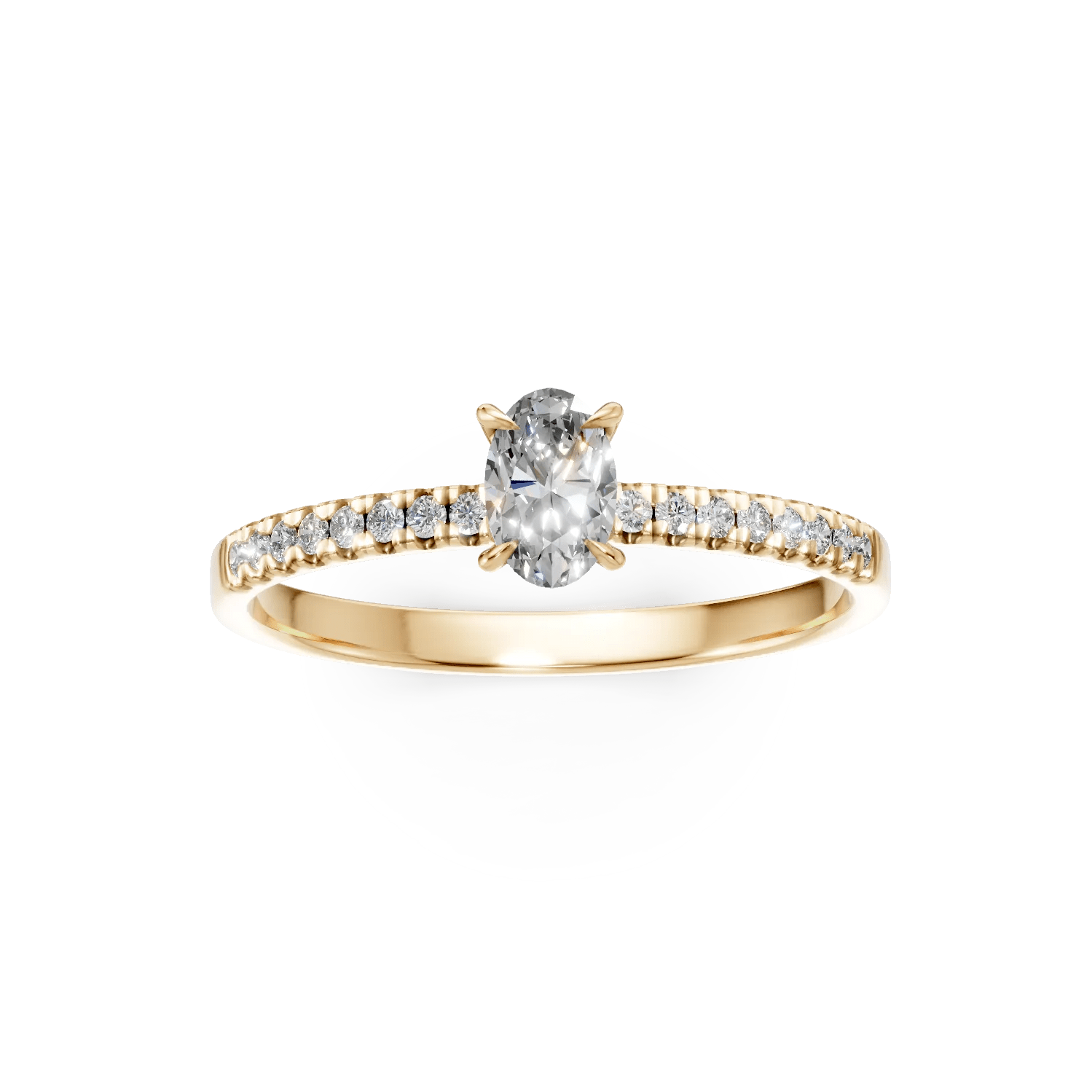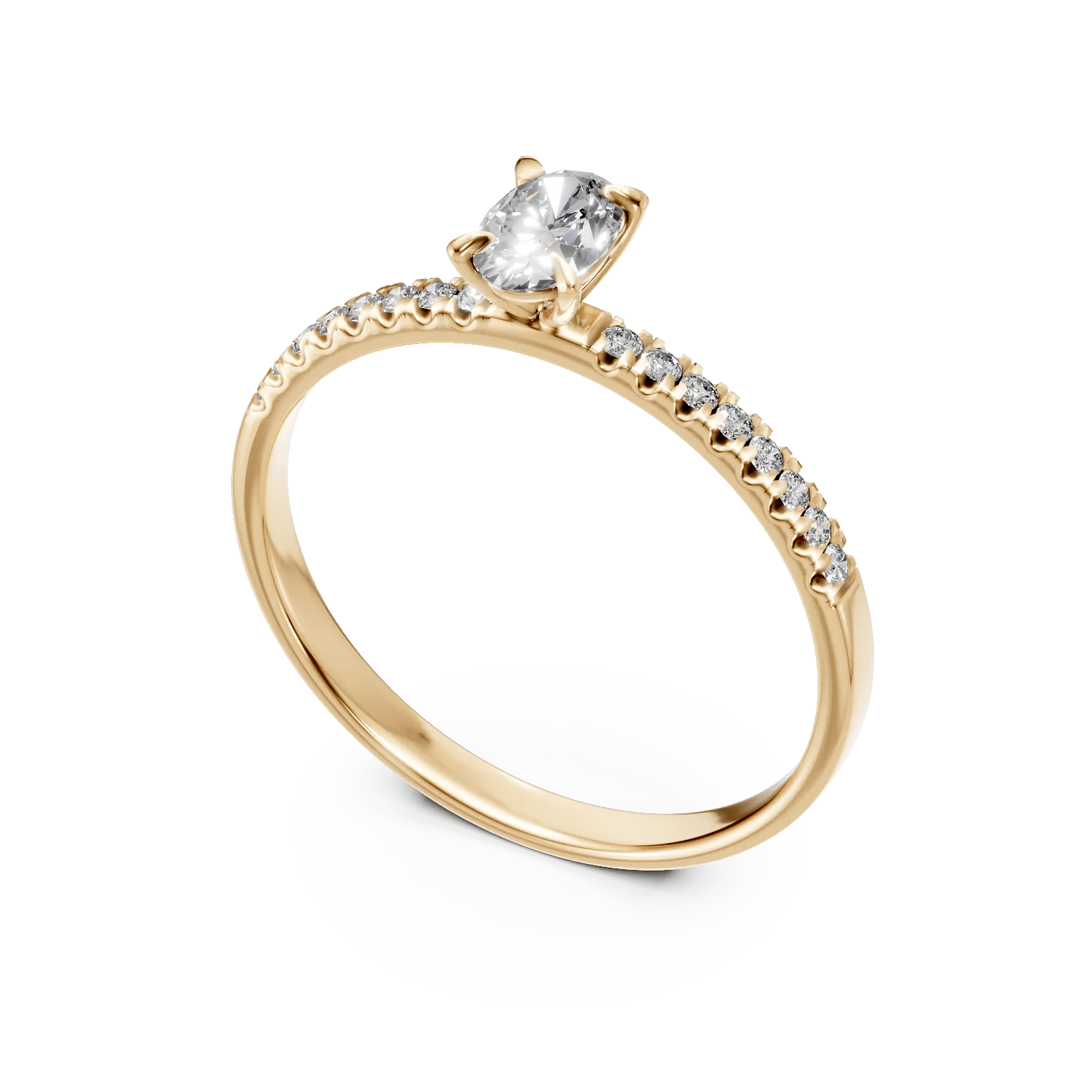 Explorați iubirea cu colecția Love Stories, dedicată momentelor unice de angajament. Acest inel de logodnă din aur galben, cu un diamant oval de 0.3ct și diamante de 0.1ct, îmbină rafinamentul cu simplitatea naturală.