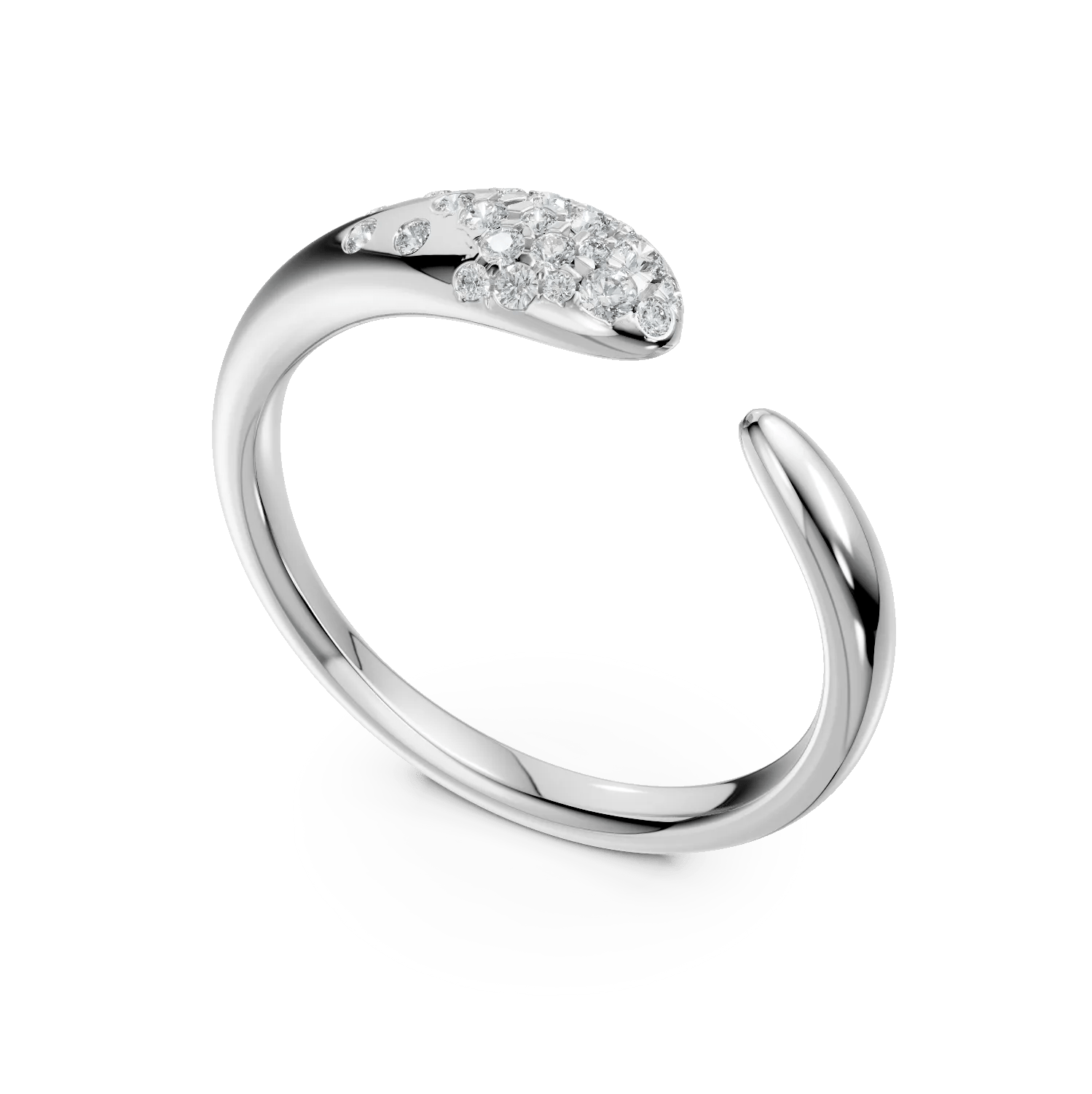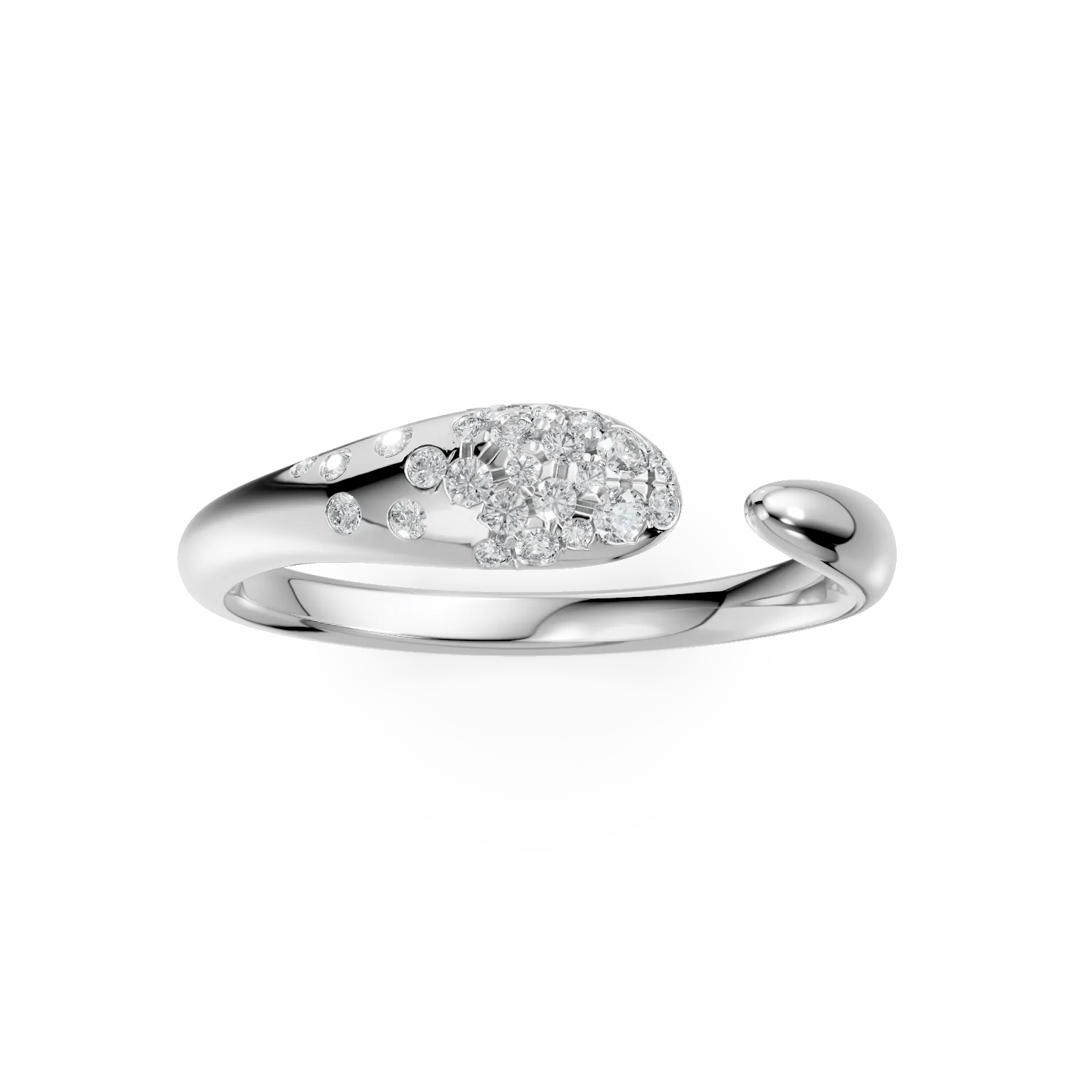 În colecția Reverie, bijuteriile se remarcă prin forme și povești captivante. Acest inel din aur alb, decorat cu diamante, este realizat cu atenție la fiecare detaliu pentru a exprima un ritm și o mișcare delicate.