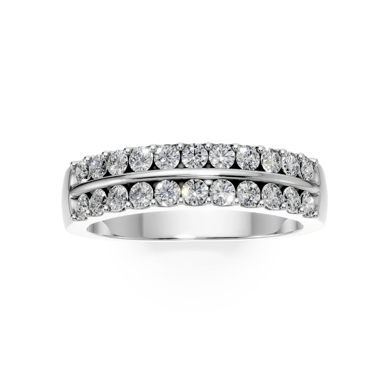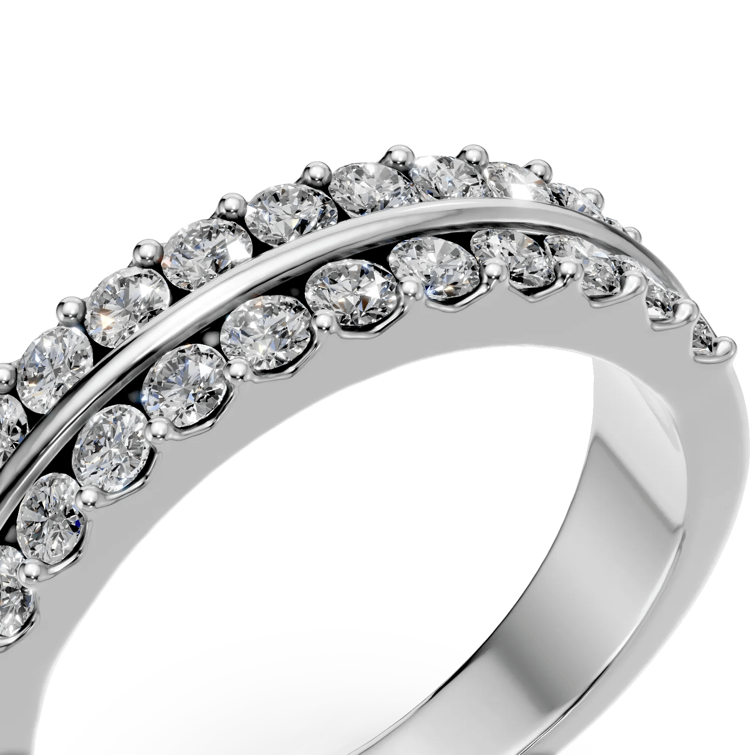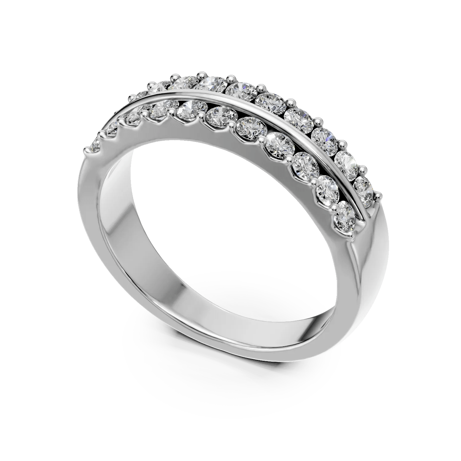 Descoperă inelul semi eternity Amber din aur alb, înfrumusețat cu diamante de 0.54ct create în laborator. Acest design elegant îți va completa ținuta zilnică, oferind un plus de modernitate și rafinament. Parte a colecției TEILOR, inelul îmbină frumusețea cu simplitatea inovatoare.