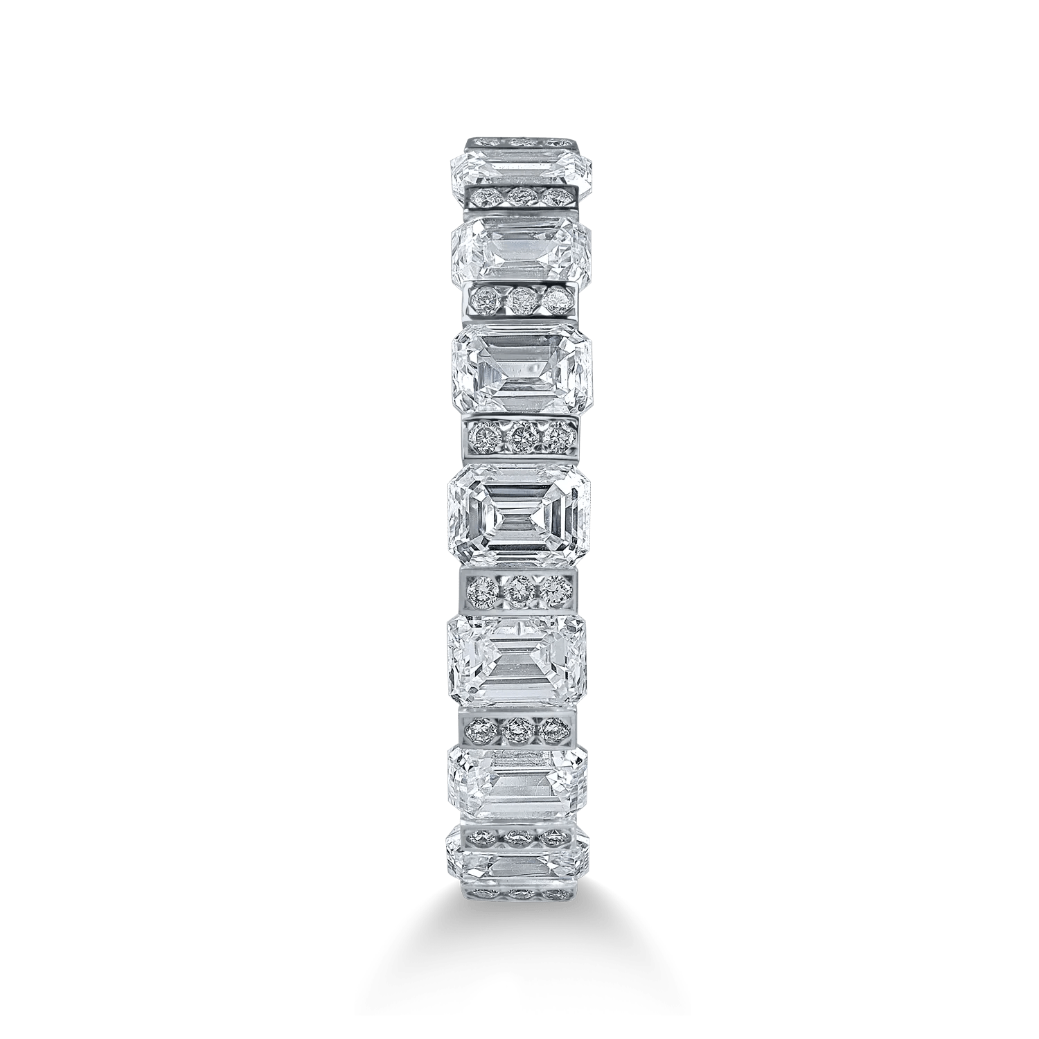 Inelul semi eternity din aur alb, încrustat cu diamante baguette și rotunde de 1.7ct, îmbină strălucirea cu eleganța. Designul său combină forme moderne cu o luminozitate sporită, oferind o notă de rafinament și simbolizând iubirea continuă.