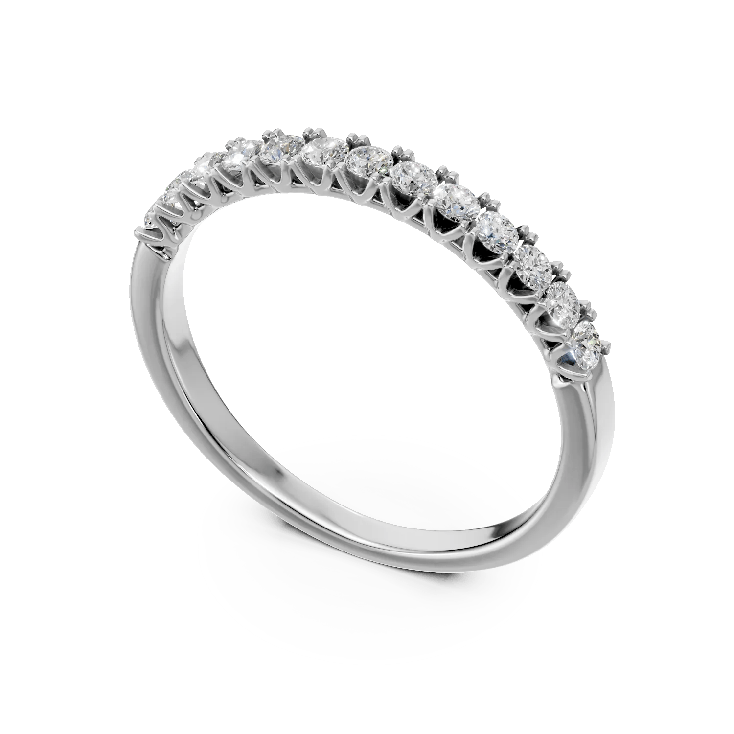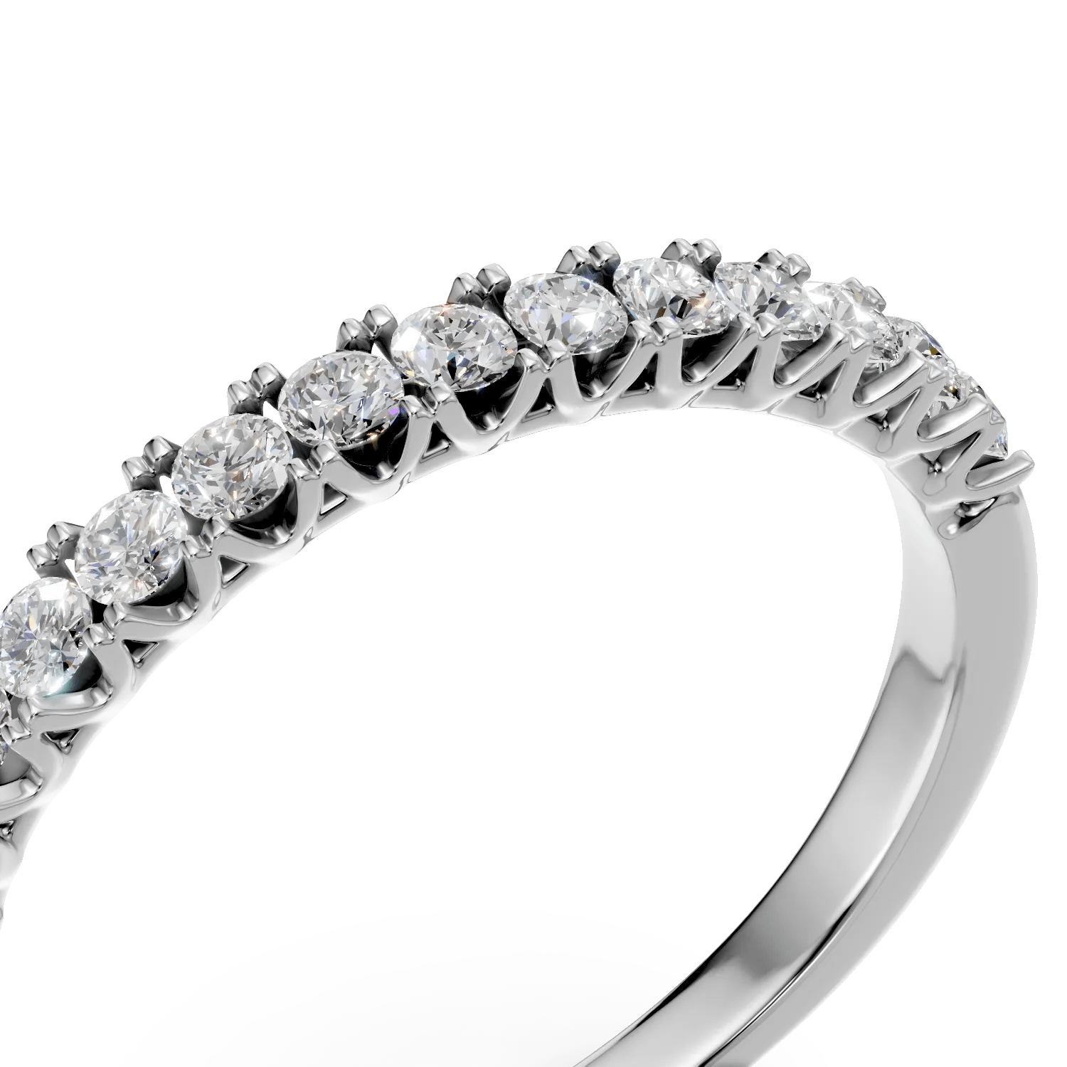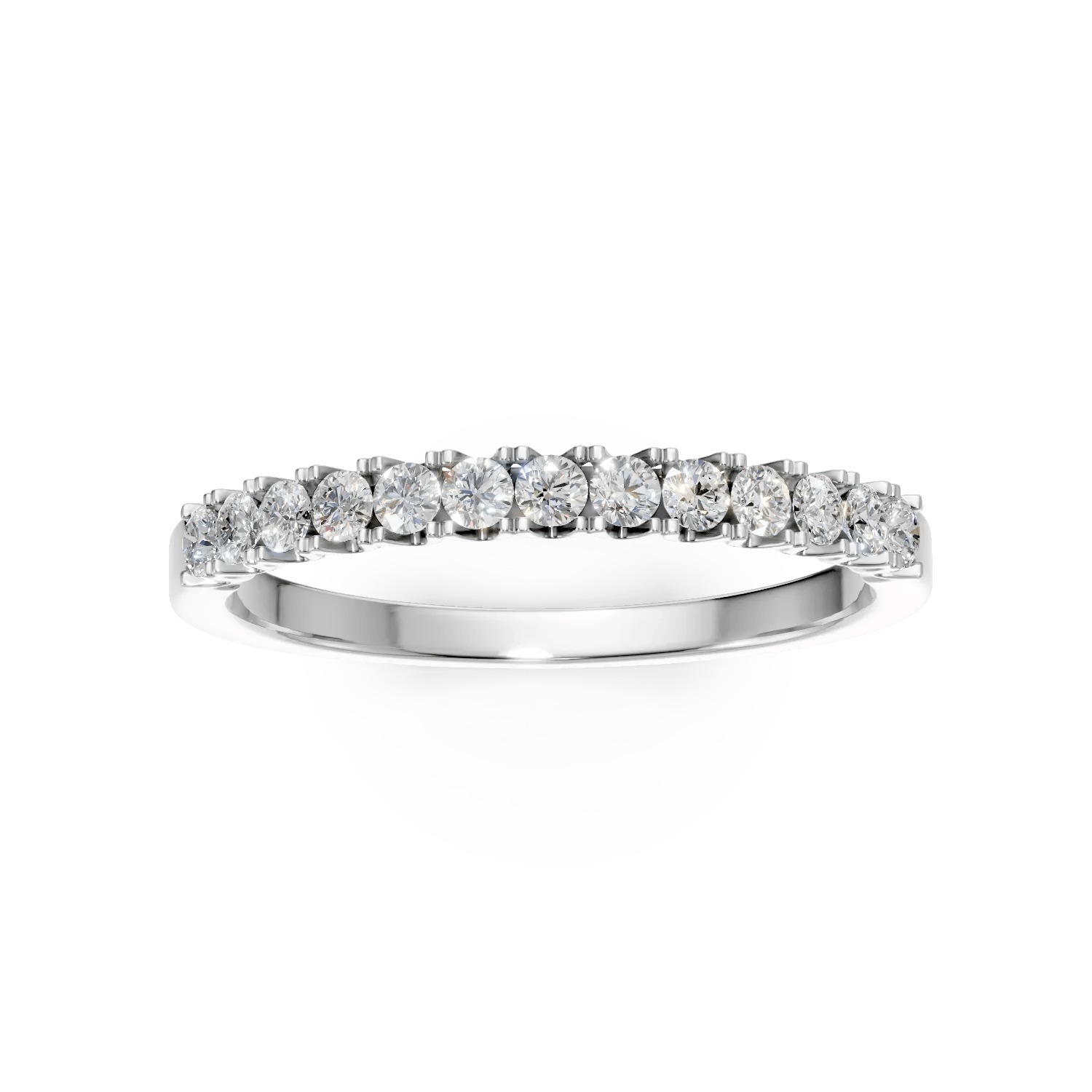 Acest inel semieternity din aur alb, împodobit cu diamante de 0.2ct, combină un design modern cu un stil clasic, adăugând un plus de strălucire oricărei ținute. Finisajul atent și detaliile rafinate subliniază unicitatea personalității tale și emană încredere.
