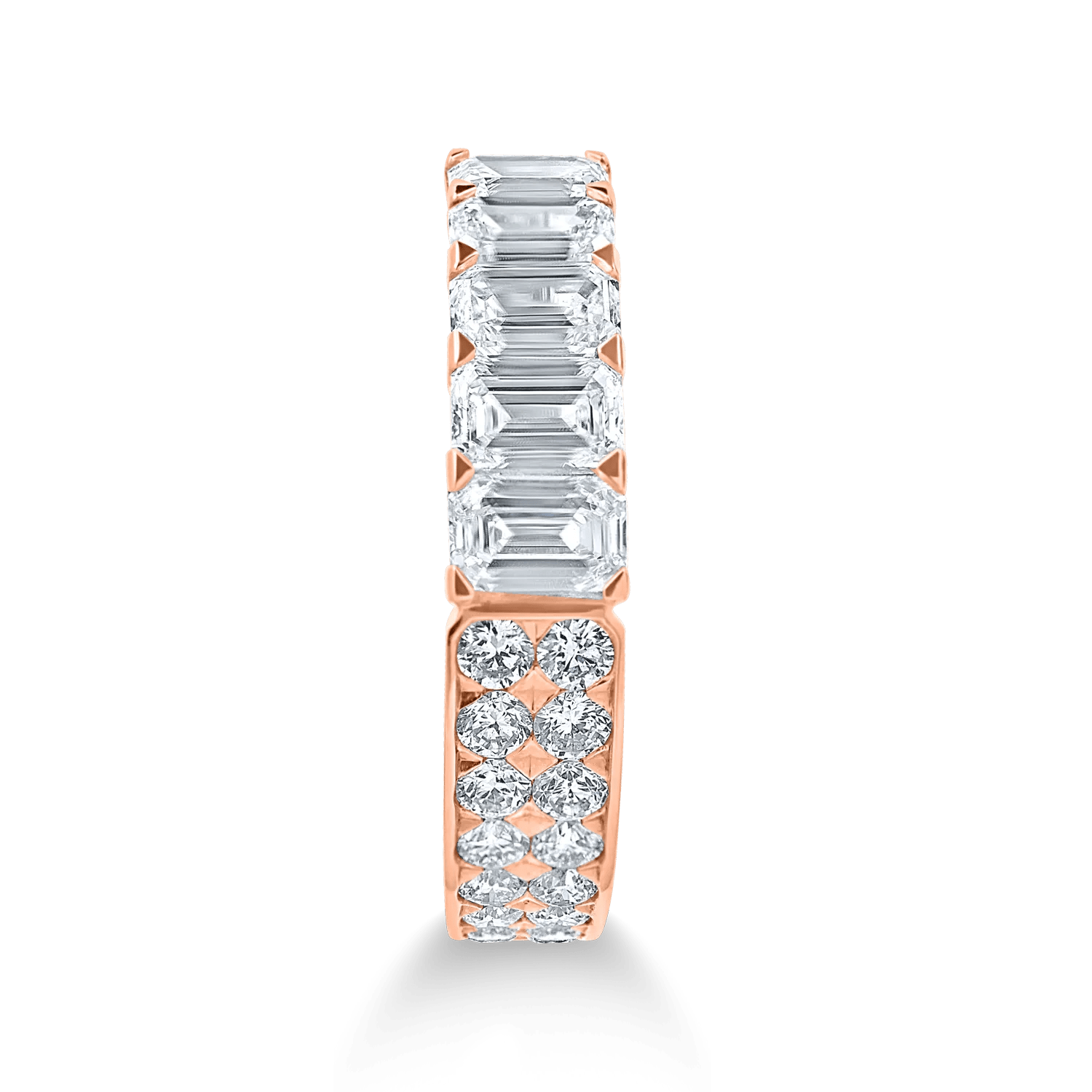 Acest inel semieternity din aur roz, decorat cu diamante emerald și rotunde de 1.6ct, este o expresie a stilului și creativității. Designul său rafinat pune în valoare claritatea pietrelor prețioase, în timp ce tonul cald al aurului roz subliniază eleganța contemporană. Fiecare detaliu reflectă măiestria artizanilor care îmbină tradiția cu inovația.