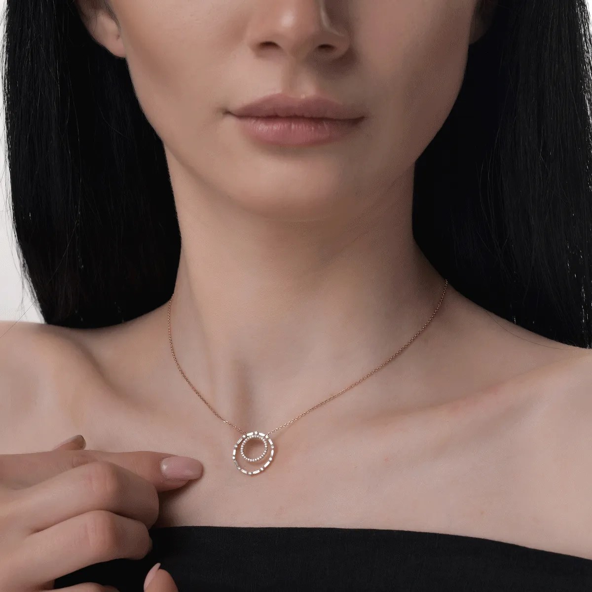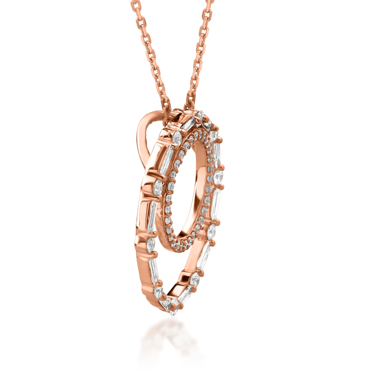 Adaugă o notă sofisticată ținutei tale cu acest lanț cu pandantiv din aur roz. Diamantele cu tăieturi baguette și rotunde, în total 0.28ct, creează un joc de lumini inedit. Montura rafinată subliniază strălucirea pietrelor, oferindu-i un aer elegant și feminin.