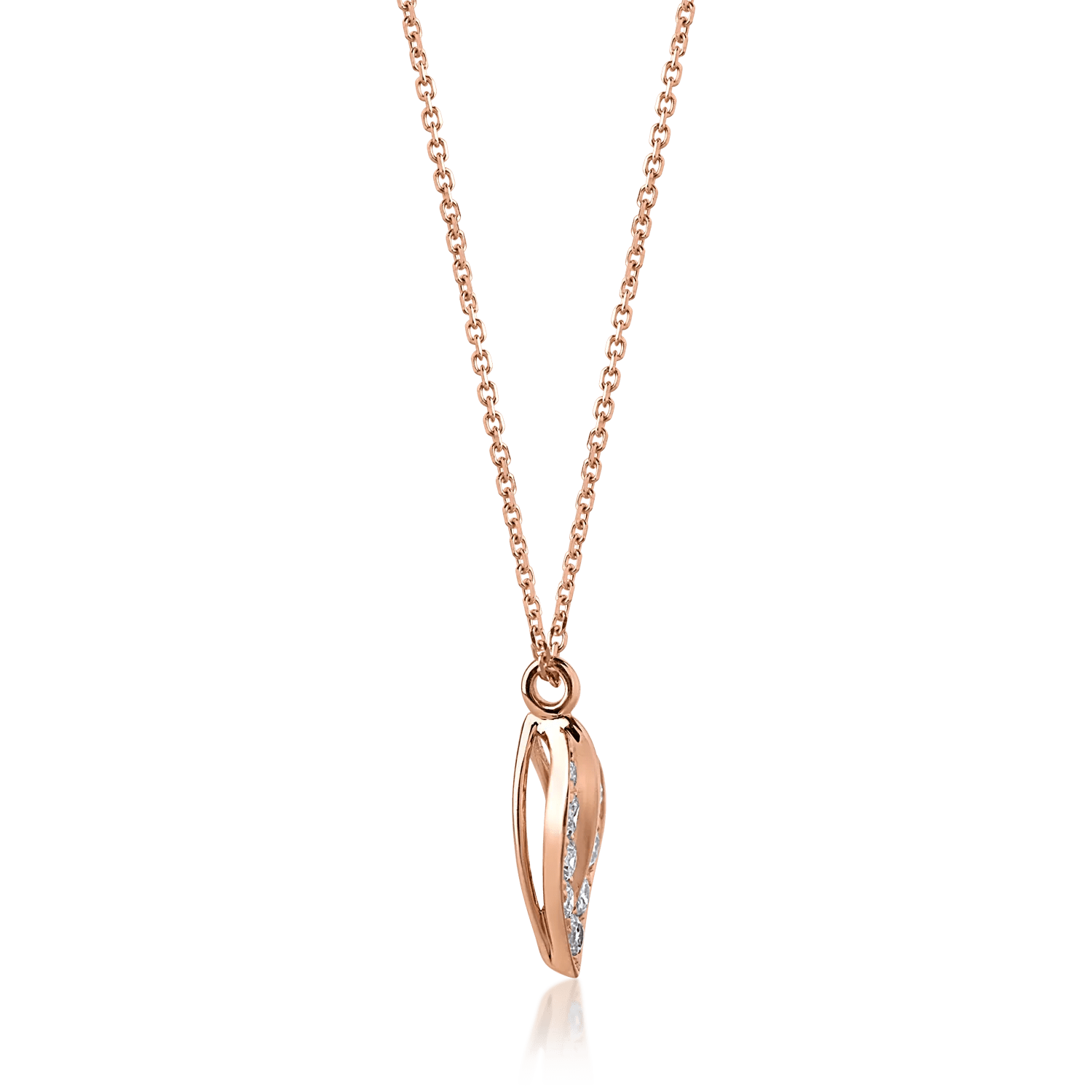 Alege eleganța discretă cu acest lanț din aur roz, înnobilat cu diamante de 0.25ct. Fiecare piatră captează lumina într-un mod subtil, completând tonurile calde ale pandantivului. O bijuterie modernă, adaptabilă oricărei ocazii.