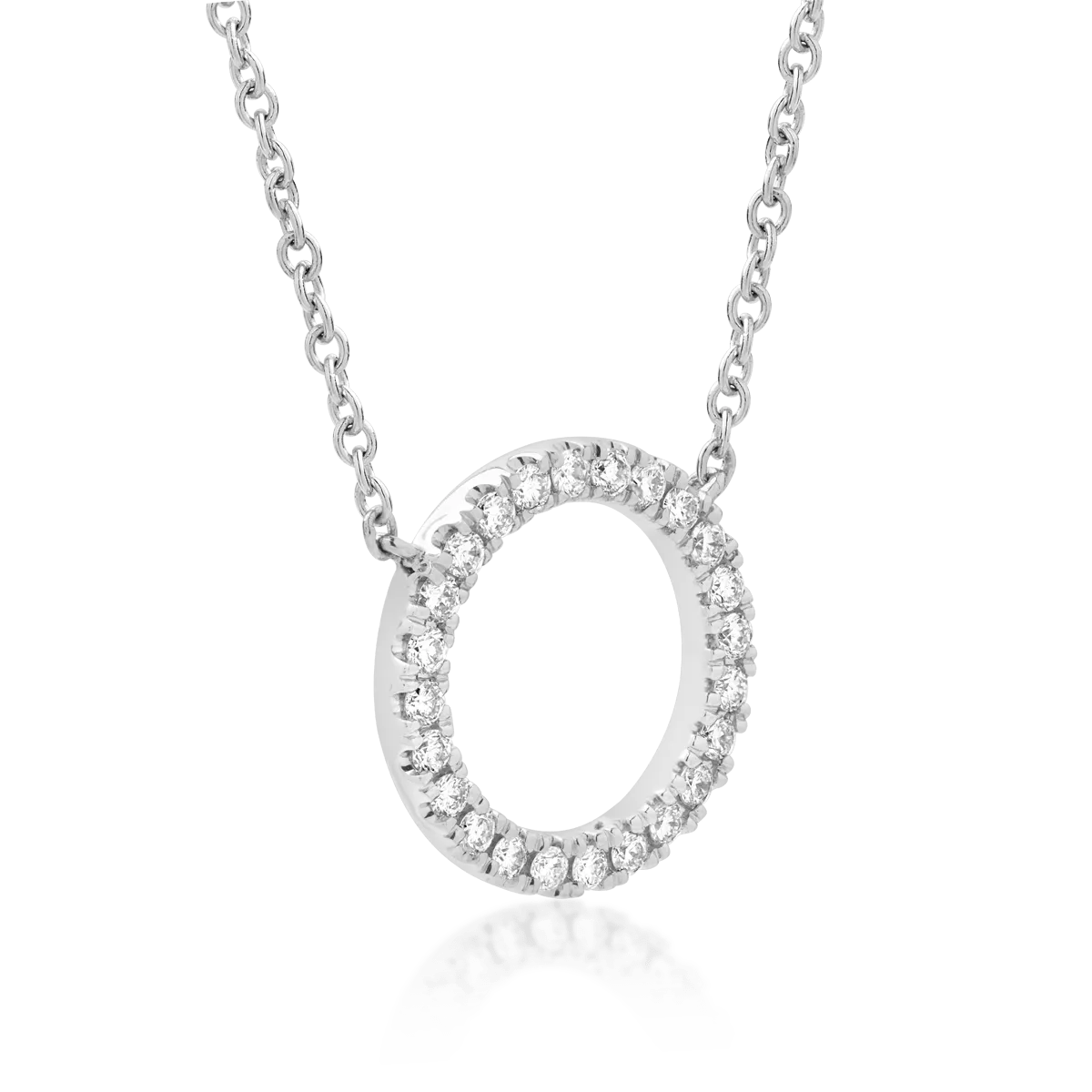 Inspiră-te din vibrația urbană cu acest lanț cu pandantiv cerc din aur alb și diamante de 0.19ct. Designul circular simbolizează continuitatea și echilibrul, în timp ce strălucirea diamantelor adaugă o notă de eleganță subtilă.
