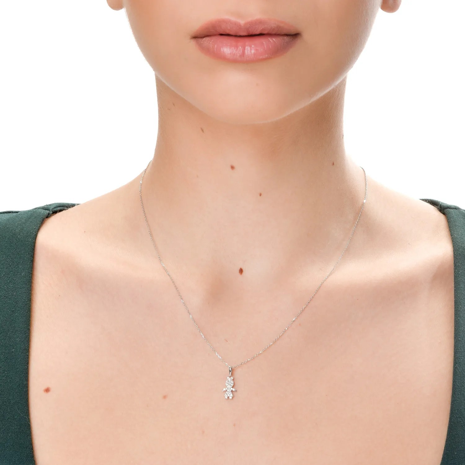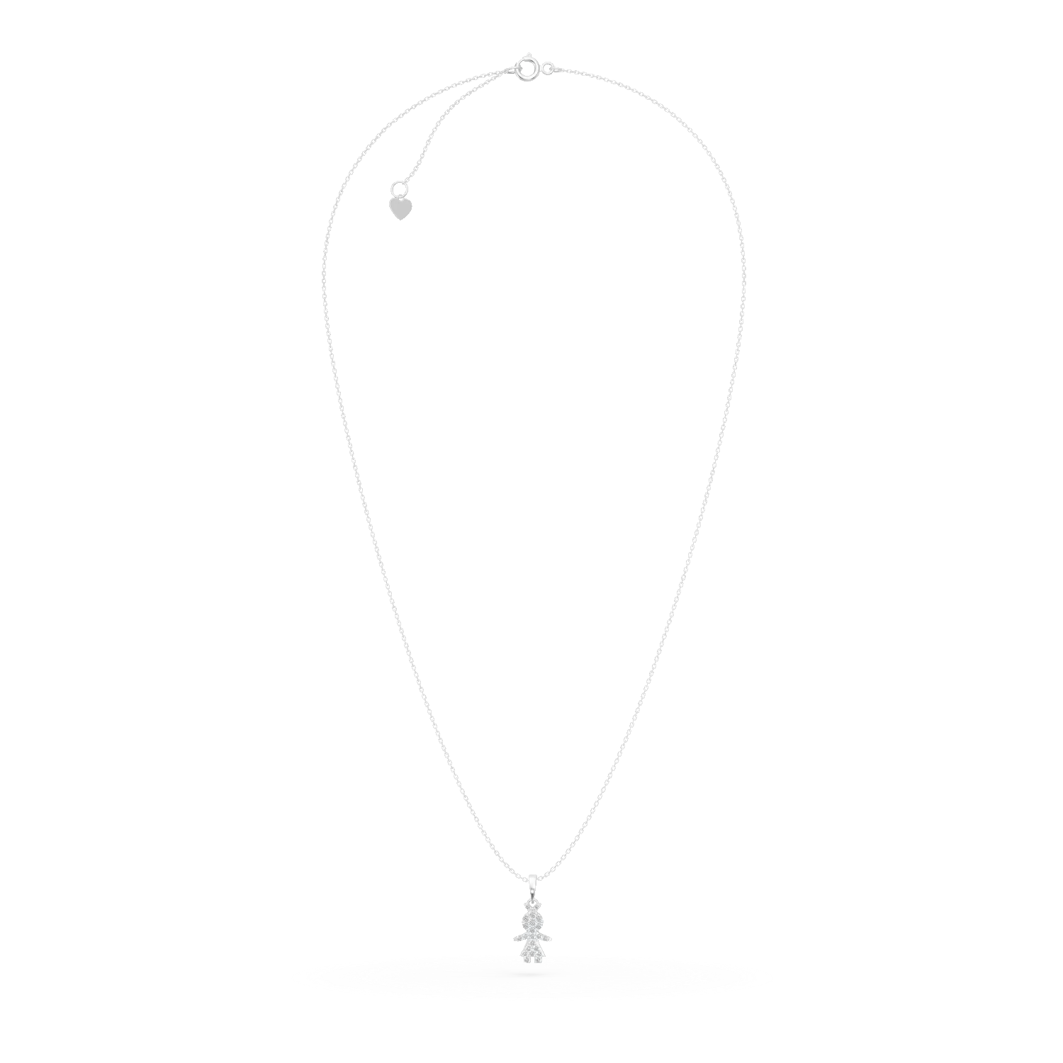 Transformă-ți stilul cu acest lanț elegant, completat de un pandantiv copil din aur alb cu diamante de 0.12ct. Strălucirea delicată a diamantelor se combină armonios cu metalul prețios, reprezentând o legătură autentică și dragoste sinceră.