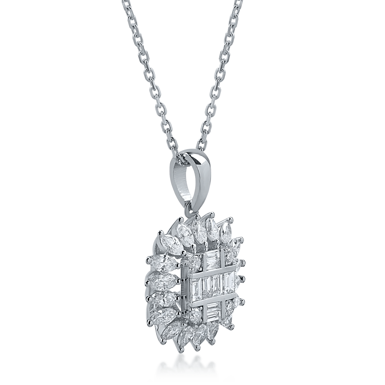 Descoperă o combinație armonioasă de eleganță și modernitate cu acest lănț din aur alb. Diamantele baguette oferă un accent geometric, în timp ce diamantul în formă de pară conferă designului o notă de fluiditate și profunzime. Ideal pentru a-ți evidenția personalitatea rafinată pe parcursul întregii zile.