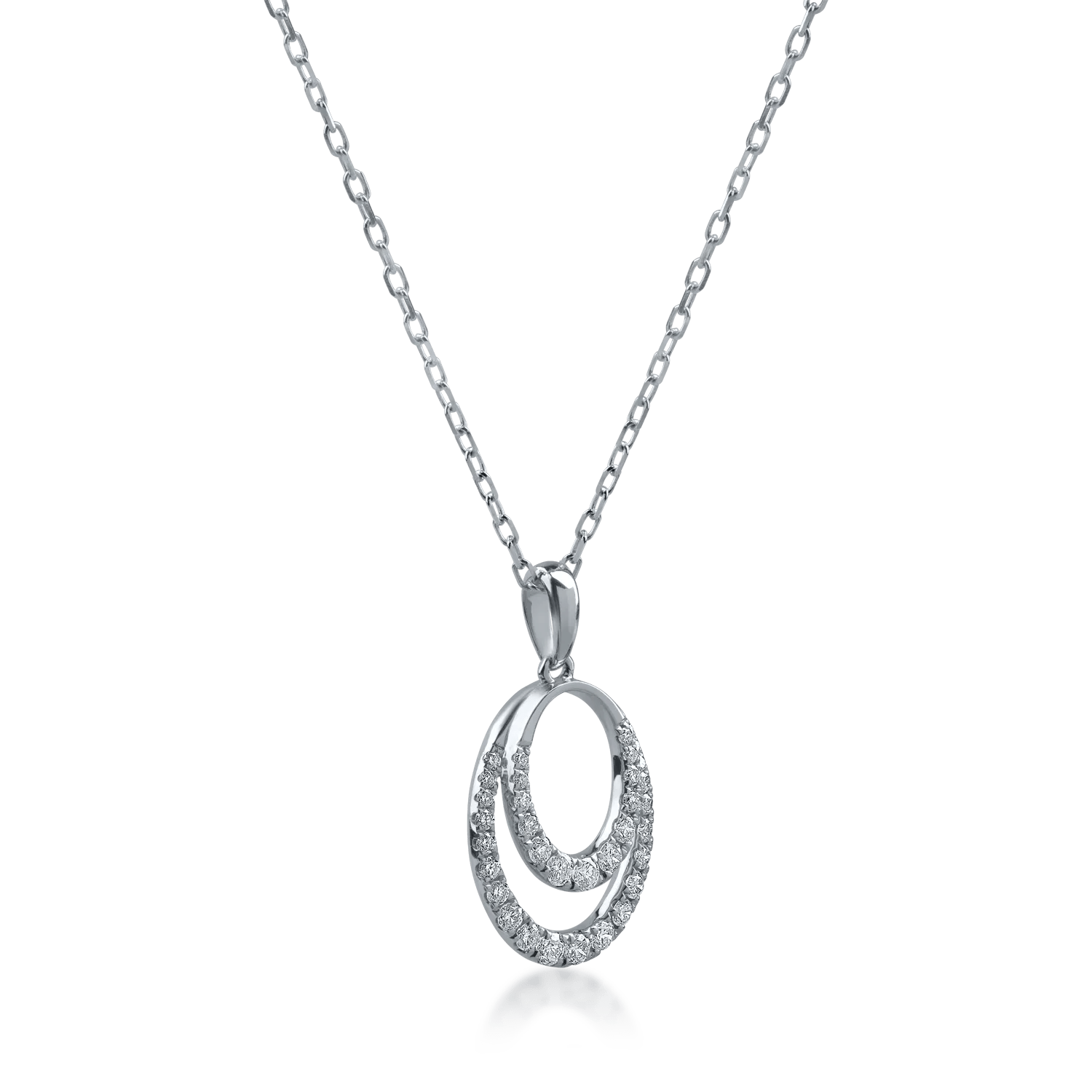 Acest lanț cu pandantiv din aur alb, împodobit cu diamante de 0.27ct, este o combinație încântătoare de eleganță și strălucire. Fatetele rafinate ale diamantelor reflectă lumina într-un mod subtil, punând în evidență frumusețea persoanei care îl poartă. Este o piesă discretă și expresivă, ideală atât pentru ținutele de zi, cât și pentru cele elegante. TEILOR – bijuterii atemporale cu design rafinat.