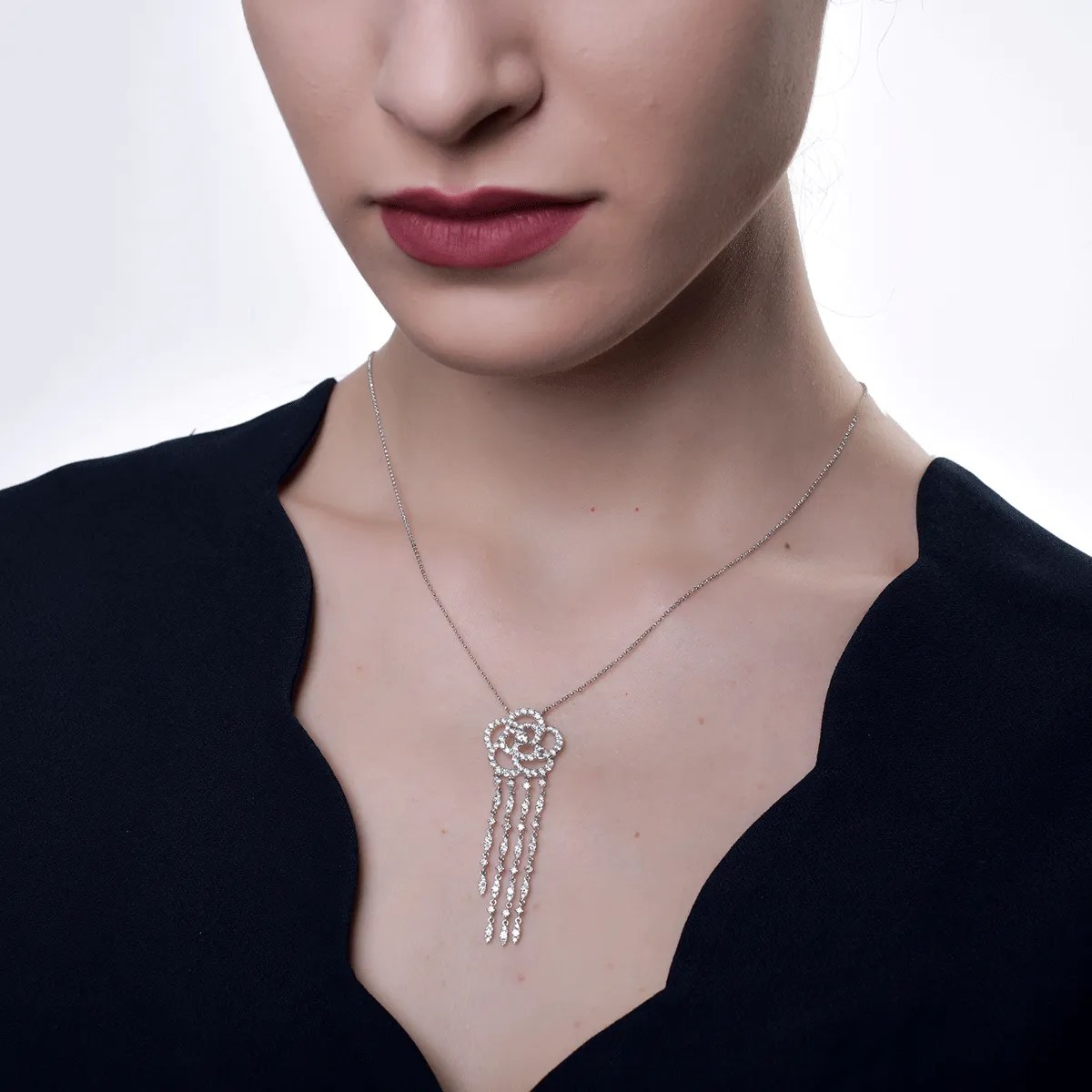 Inspiră-te din rafinamentul vieții moderne cu acest lanț cu pandantiv din aur alb, împodobit cu diamante de 1.71ct. Designul elegant și detaliile atent realizate conferă o eleganță atemporală colecțiilor TEILOR.