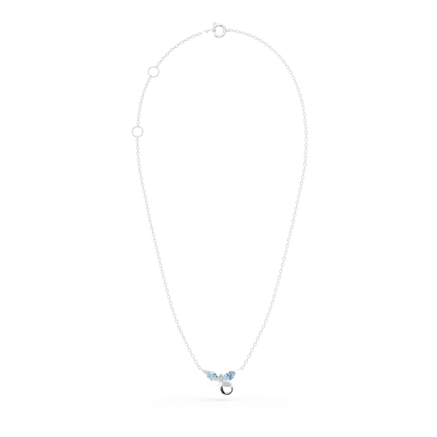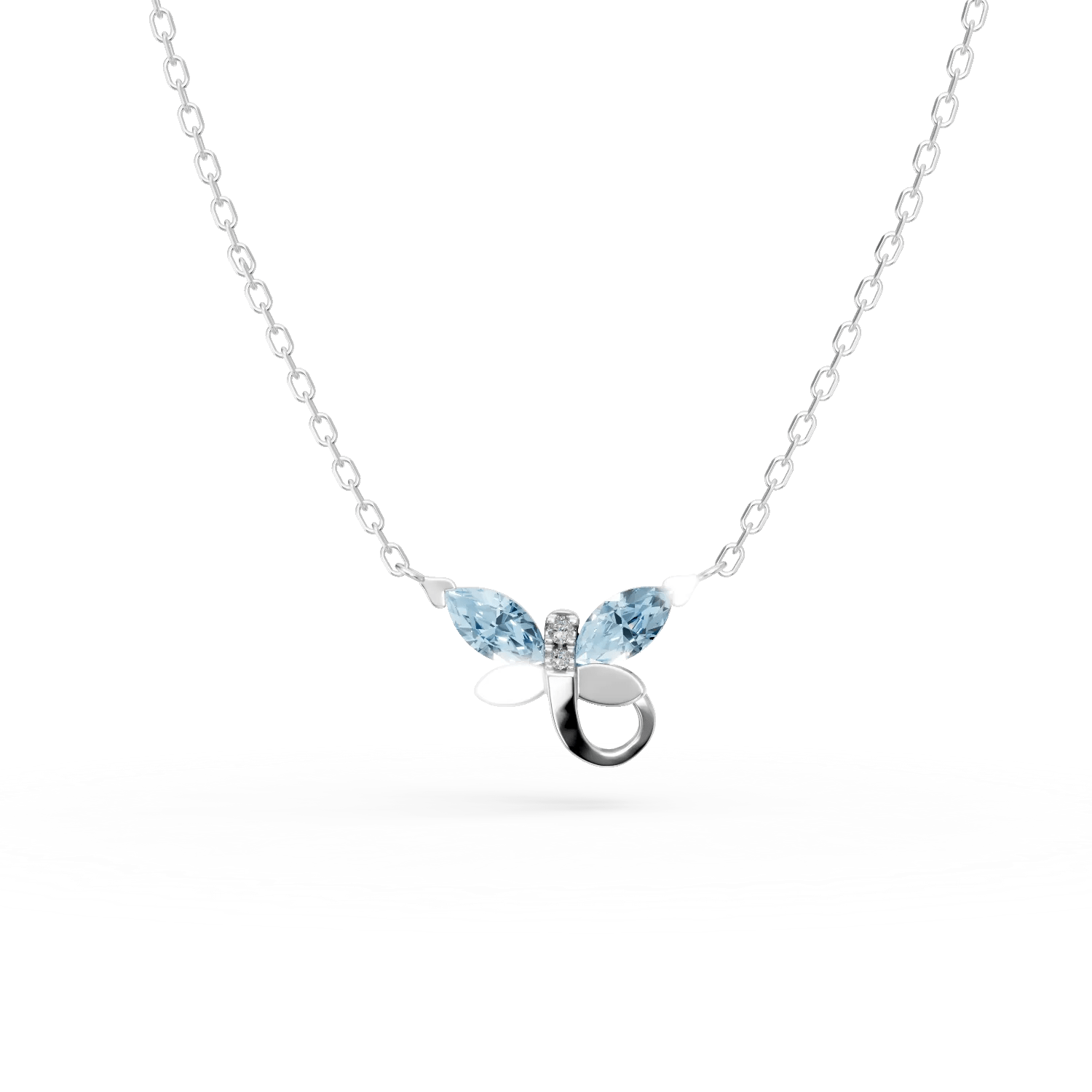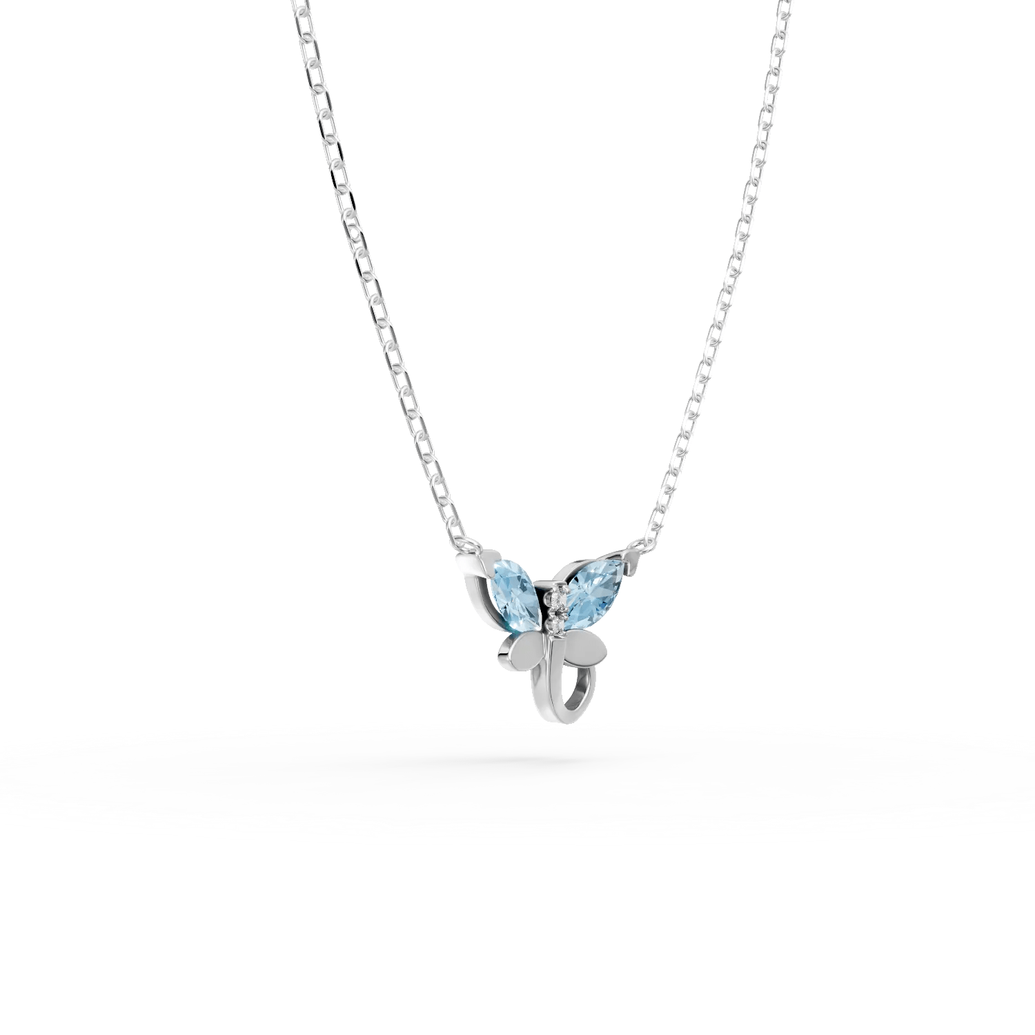 Capturând esența copilăriei, acest lanț din aur alb îmbină frumusețea topazelor albastre marquise de 0.3ct cu strălucirea subtilă a diamantelor de 0.008ct. Designul său elegant și jucăuș evocă momente magice, păstrând amintiri prețioase și bucuria sinceră a celor mici.