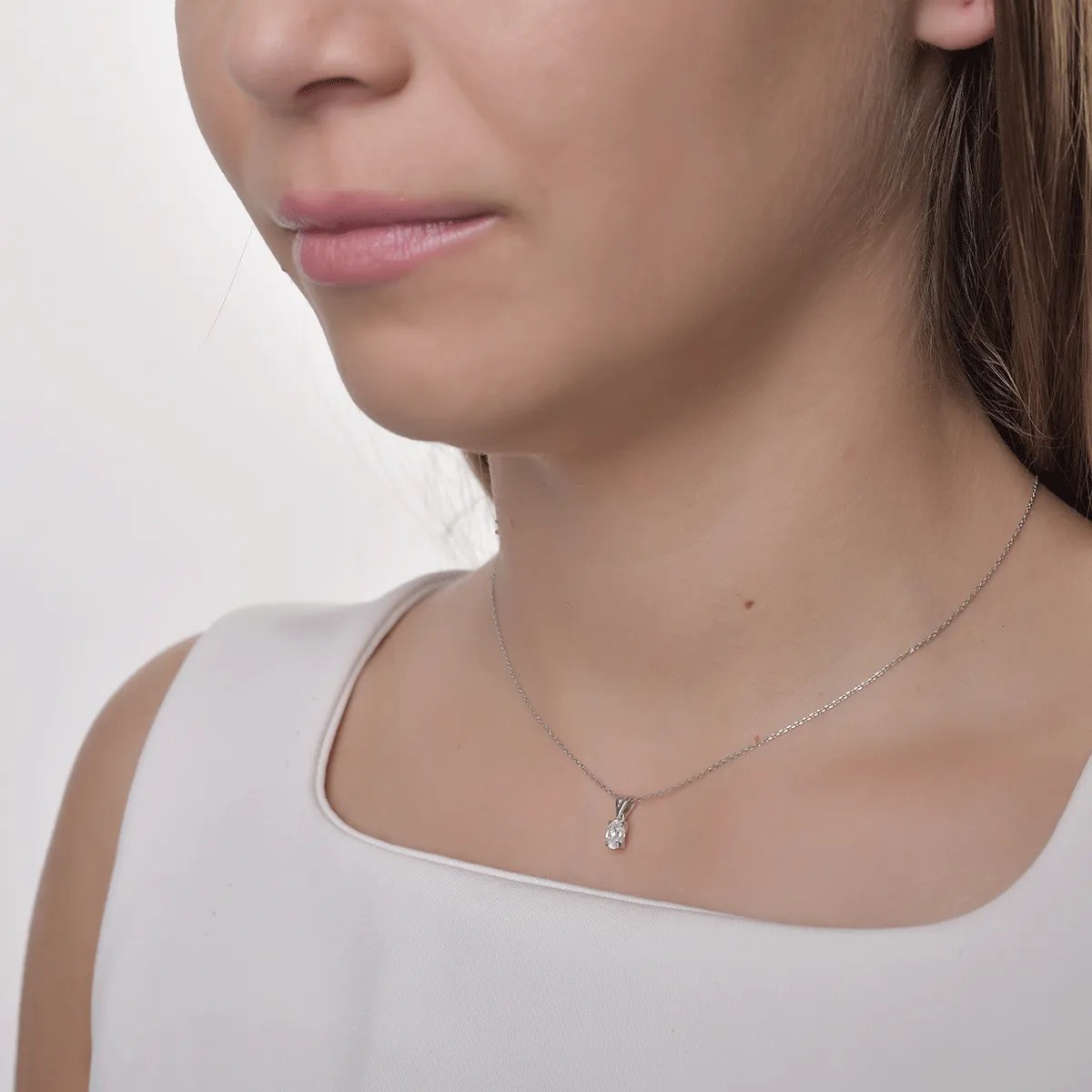 Acest lanț elegant, cu pandantiv din aur alb și diamant oval de 0.3ct, este creat pentru a accentua rafinamentul. Forma ovală a diamantului oferă o alungire vizuală și o strălucire intensă, perfectă pentru femeia care își recunoaște farmecul. O opțiune sofisticată și discretă.