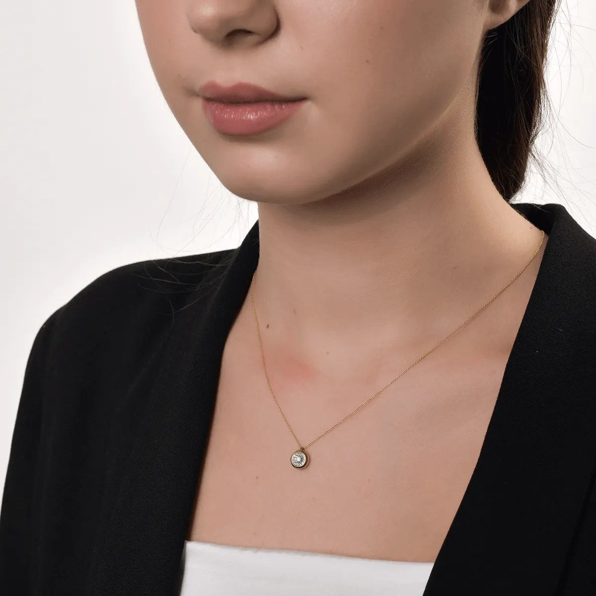 Descoperă eleganţa pură cu acest lanţ din aur galben. Include un pandantiv cu diamant central de 0.122ct, completat de diamante de 0.04ct, perfect echilibrat între detalii clasice şi accente moderne. O alegere ideală pentru fiecare ocazie.