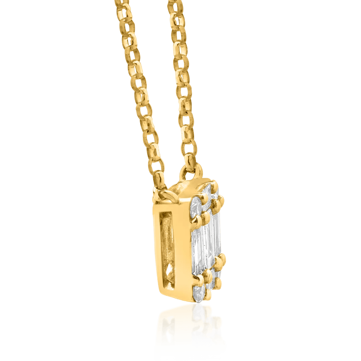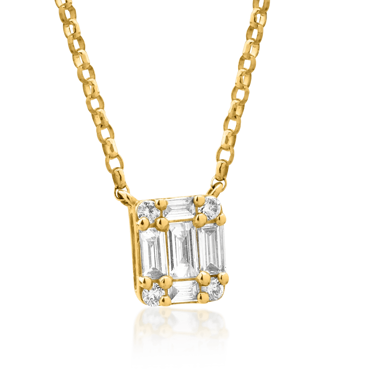 Descoperă eleganța clasica a unui lanț din aur galben, decorat cu diamante baguette și rotunde de 0.27ct. Combinația dintre tăietura precisă a diamantelor baguette și strălucirea celor rotunde oferă un echilibru perfect între modern și rafinat. O bijuterie ideală pentru a sublinia frumusețea subtilă și detaliile fine ale stilului tău autentic.