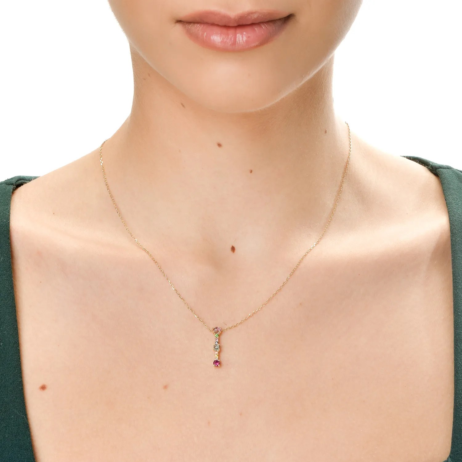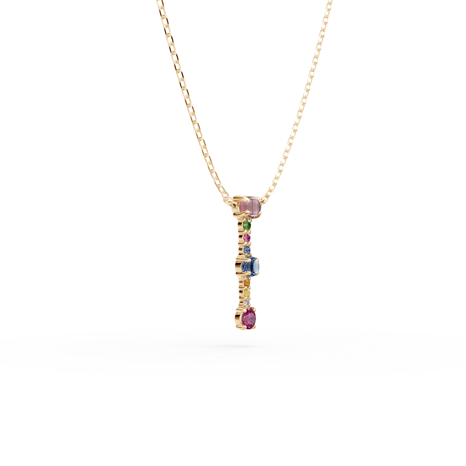 Acest lanț din aur galben, cu pandantiv sub formă de inițială I, combină un design clasic și rafinat. Decorat cu pietre prețioase și semiprețioase de 0.6ct, pandantivul vertical este accentuat elegant. Nuantele de aur galben adaugă strălucire, făcându-l potrivit pentru orice ocazie specială.