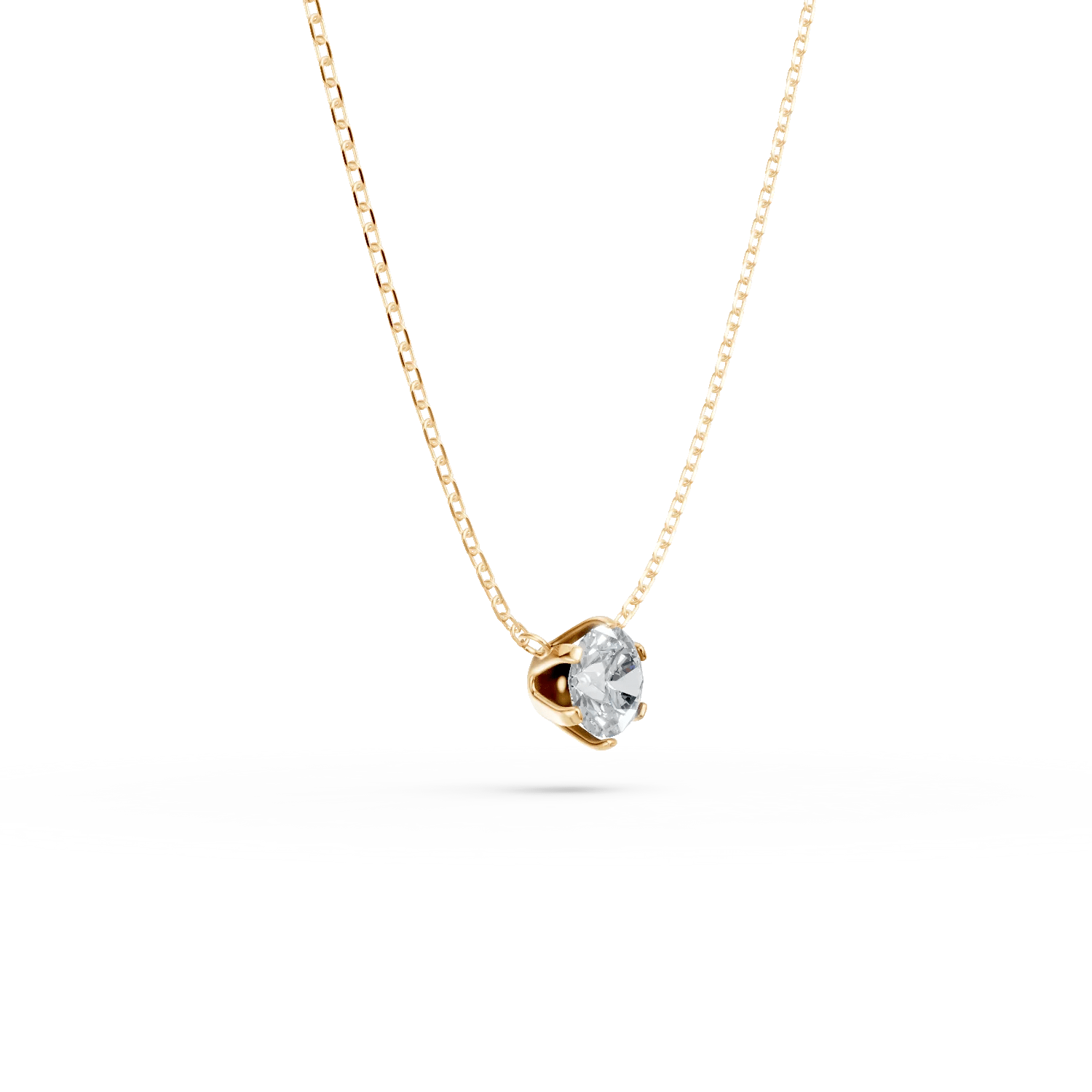 Descoperă un lanț cu pandantiv din aur galben ce include un diamant central de 0.1ct, perfect tăiat pentru reflexii intense. Designul minimalist al acestuia combină eleganța și stilul personal, transformându-l într-o bijuterie sofisticată ce rezonează cu personalitatea ta.
