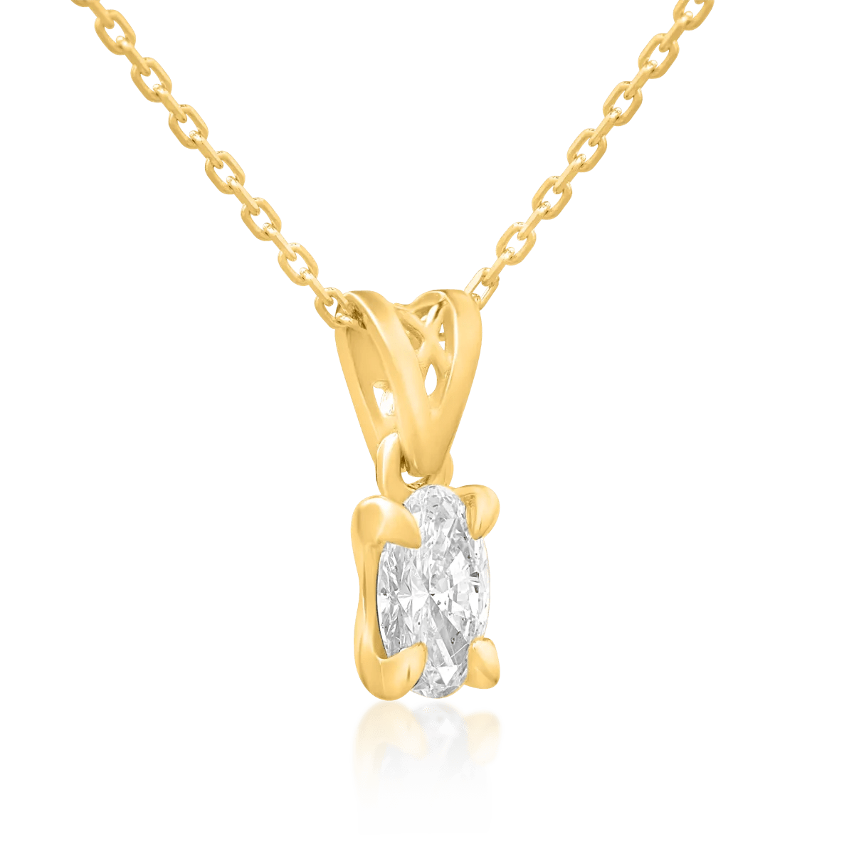 Descoperă eleganța subtilă a acestui lanț din aur galben, având un pandantiv cu diamant oval de 0.4ct. Designul său rafinat pune în evidență claritatea și strălucirea diamantului, fiind potrivit atât pentru ținute casual, cât și sofisticate. Diamantul este însoțit de certificatul de autenticitate și calitate GIA.