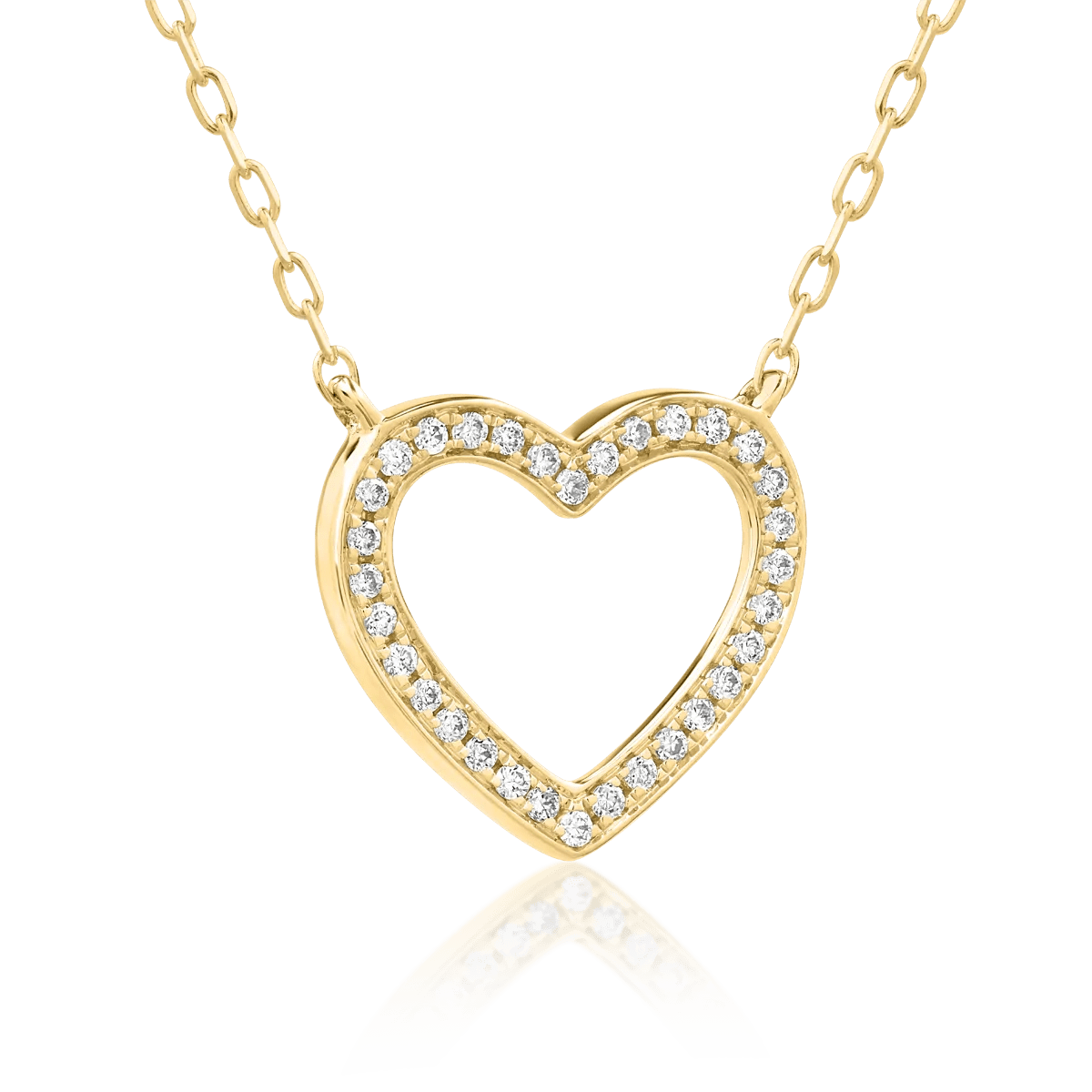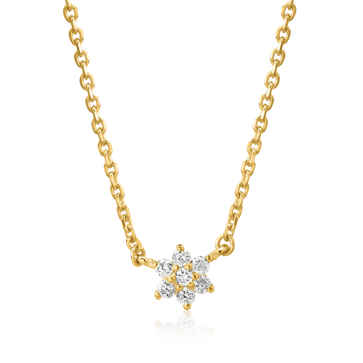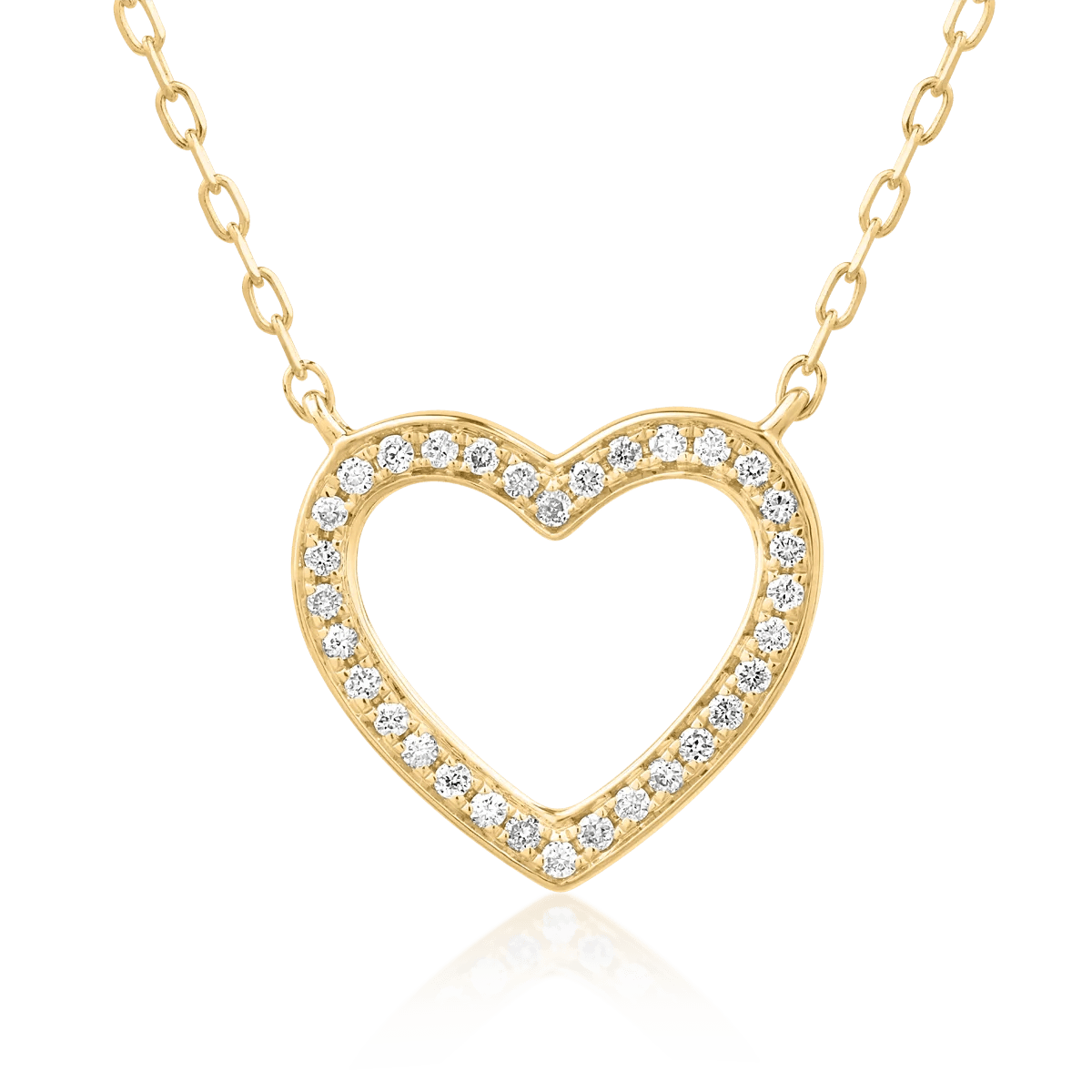 Acest lanț cu pandantiv din aur galben încorporează diamante de 0.08ct, oferind un accent rafinat ținutelor elegante. Designul său atrage privirile datorită strălucirii subtile a diamantelor care îmbină nuanța caldă a aurului.