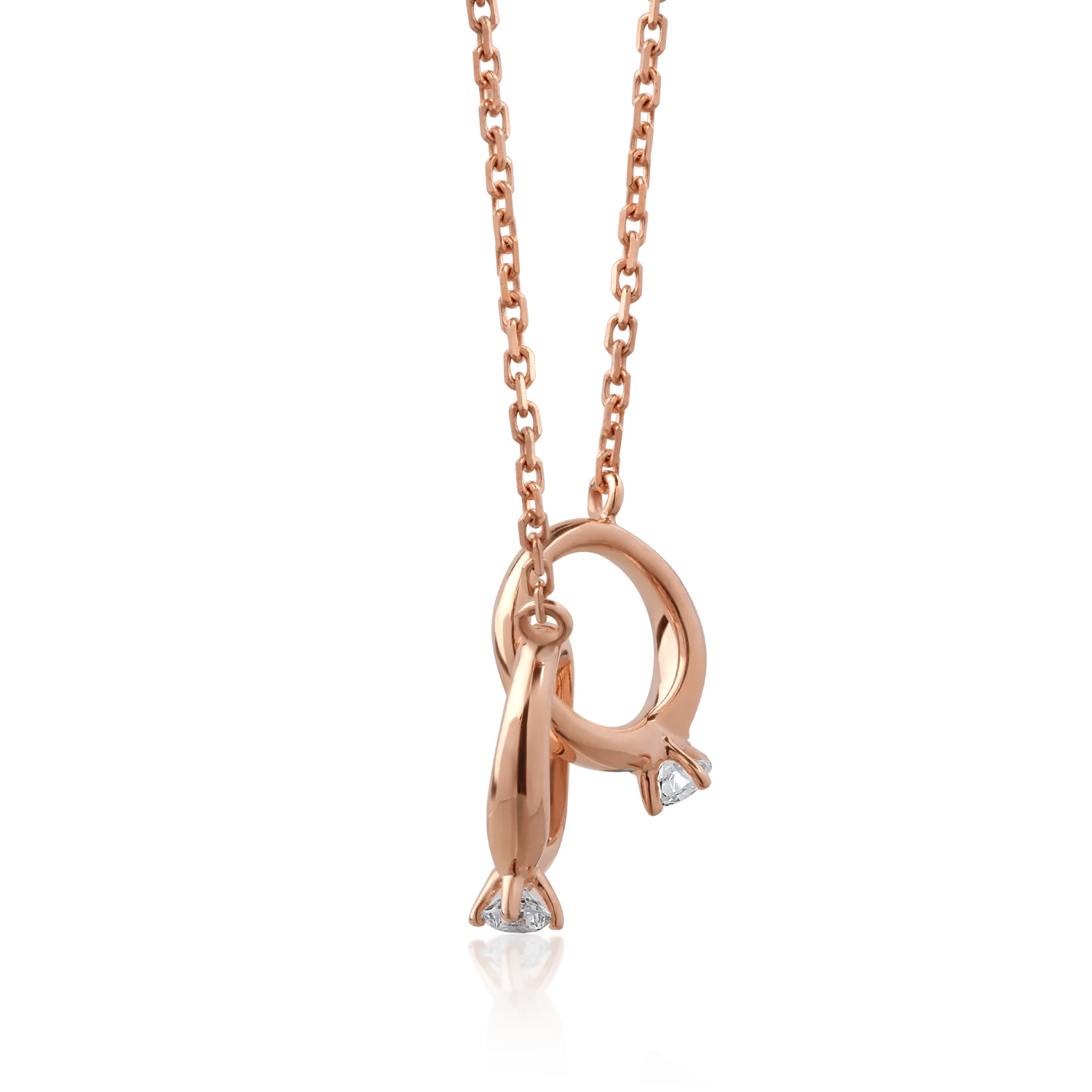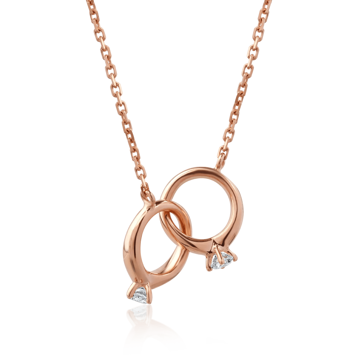 Alege să strălucești cu acest lanț cu pandantiv din aur roz, încântător prin diamantele sale de 0.048ct. Designul său minimalist subliniază subtilitatea și rafinamentul, reflectând tonuri calde și luminozitate elegantă.