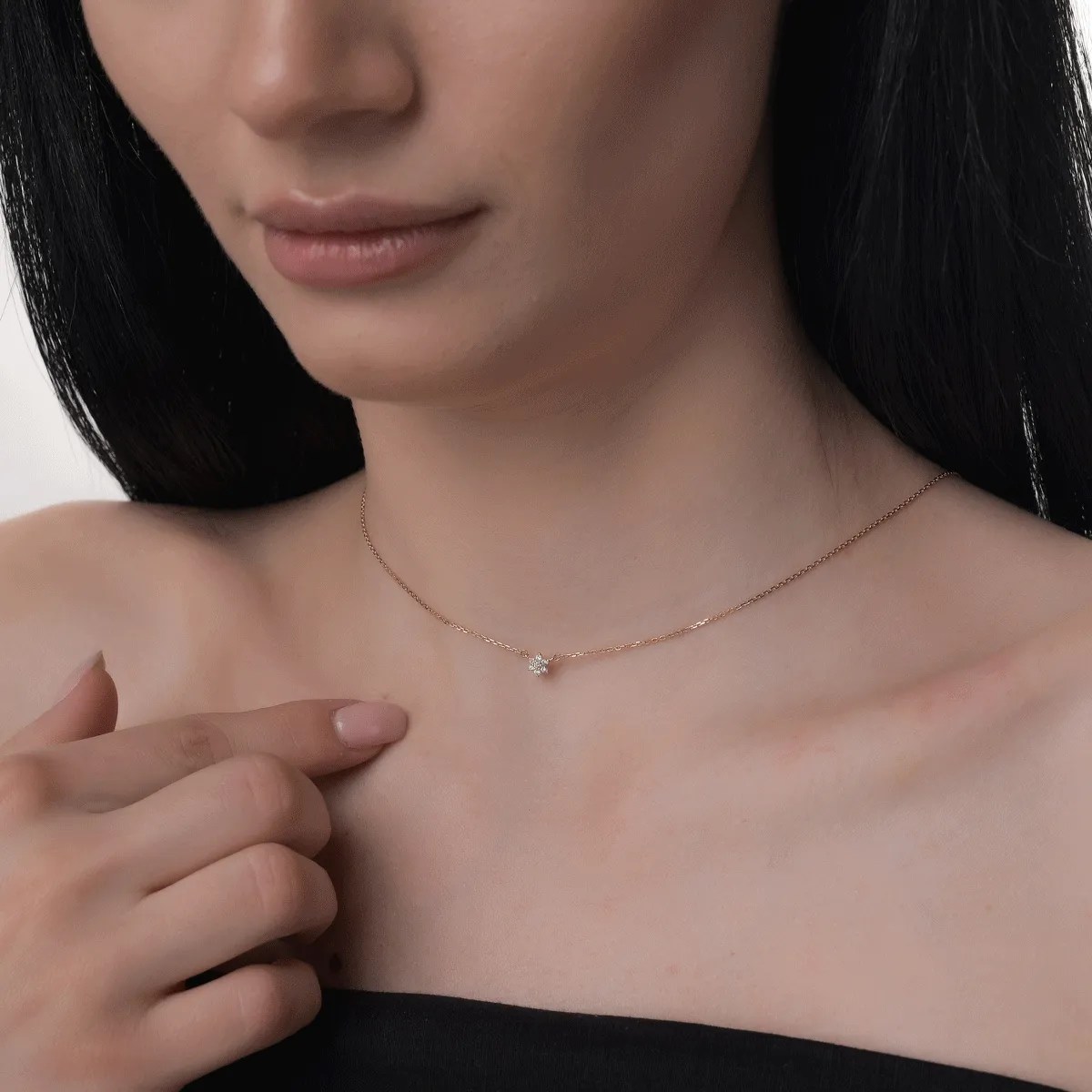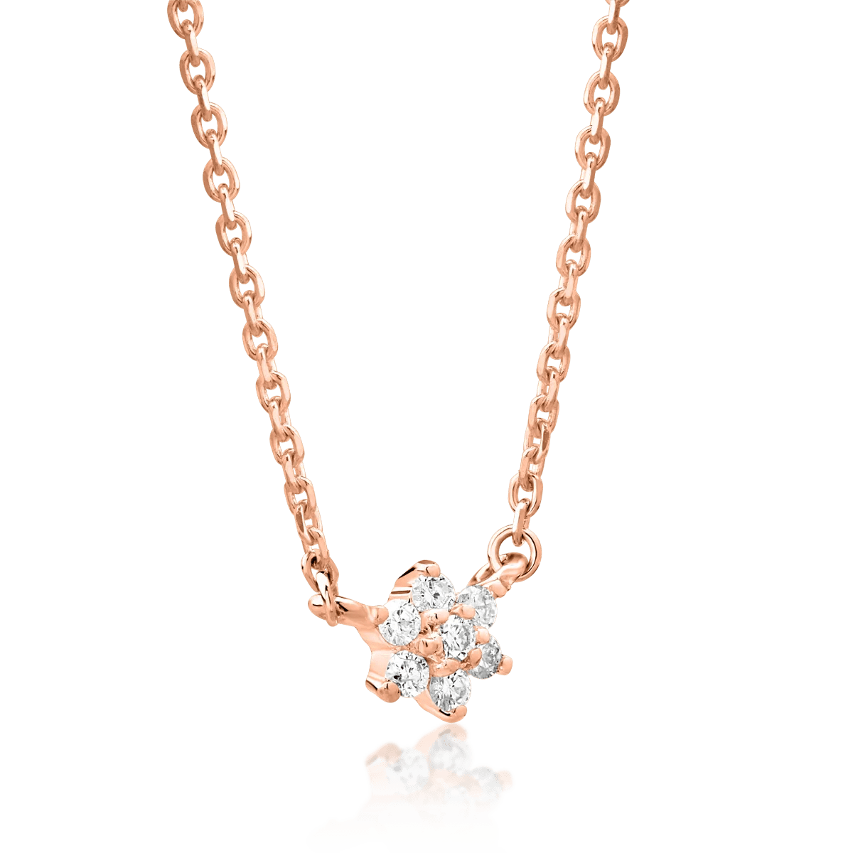 Accesoriu perfect pentru o femeie modernă, acest lanț cu pandantiv din aur roz și diamante de 0.08ct îmbină simplitatea cu strălucirea. Ideal pentru a completa atât ținute casual, cât și elegante, adăugând un plus de feminitate și rafinament.