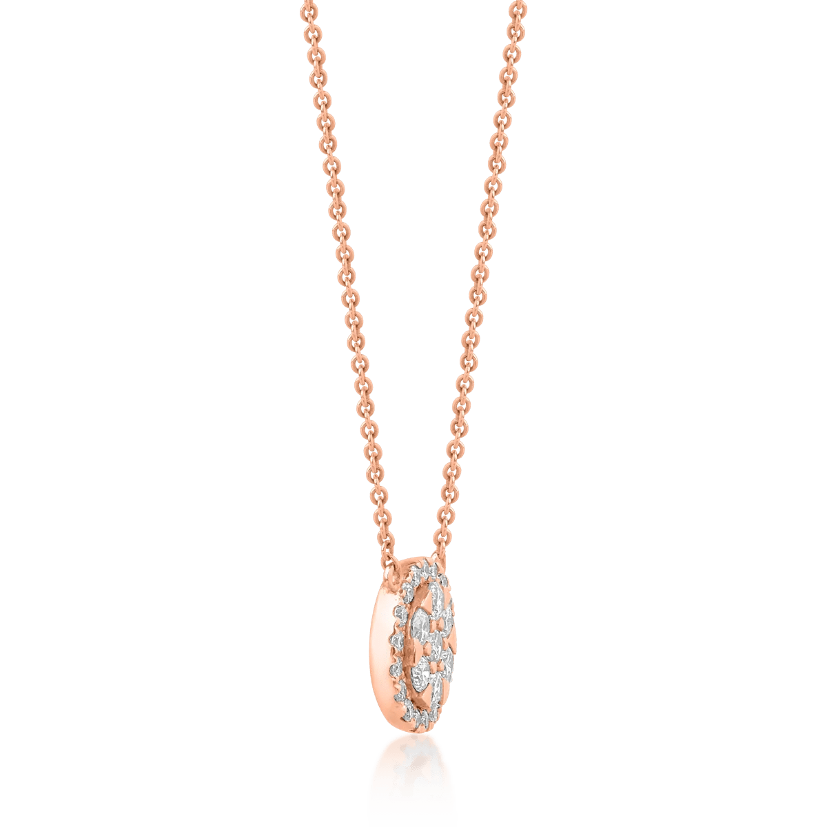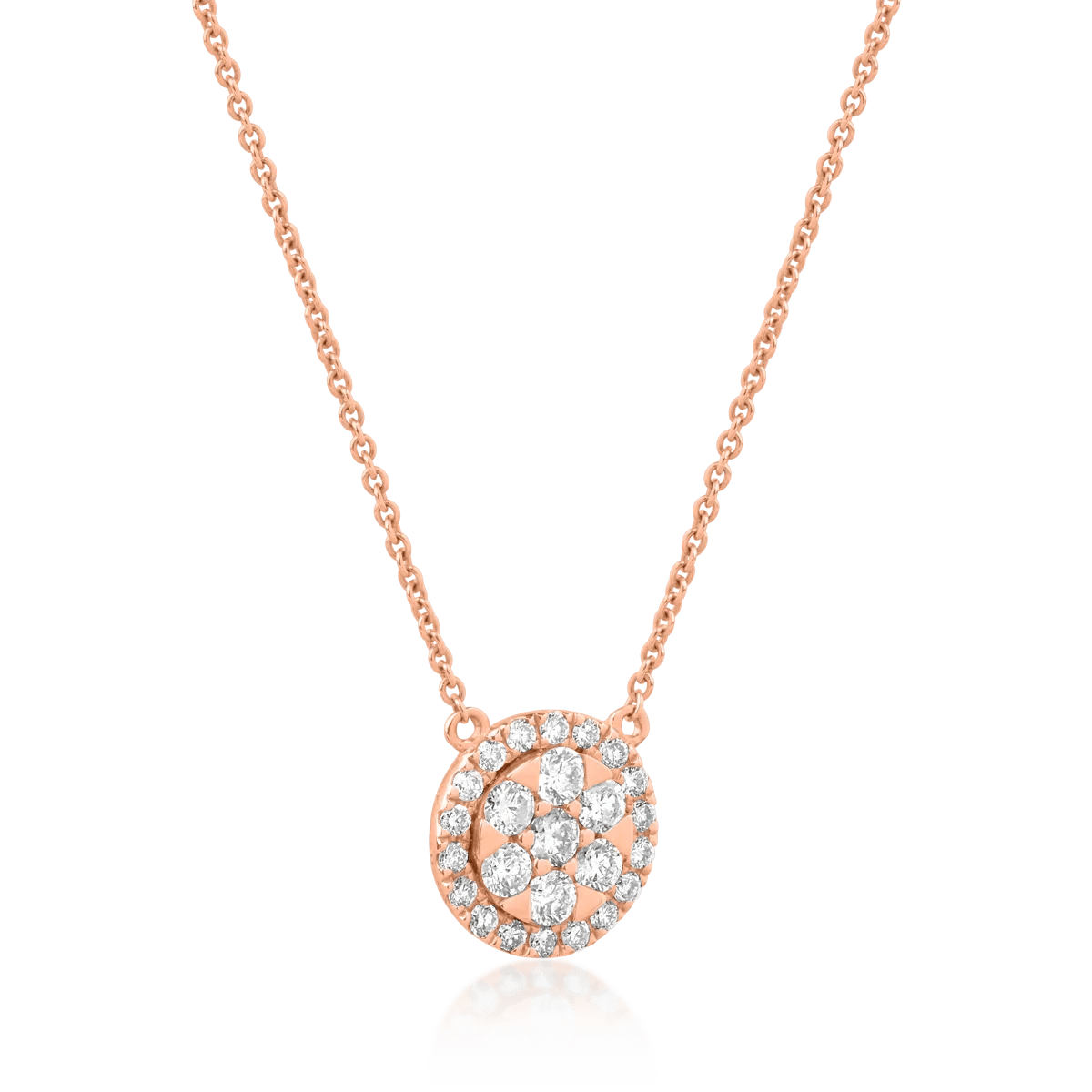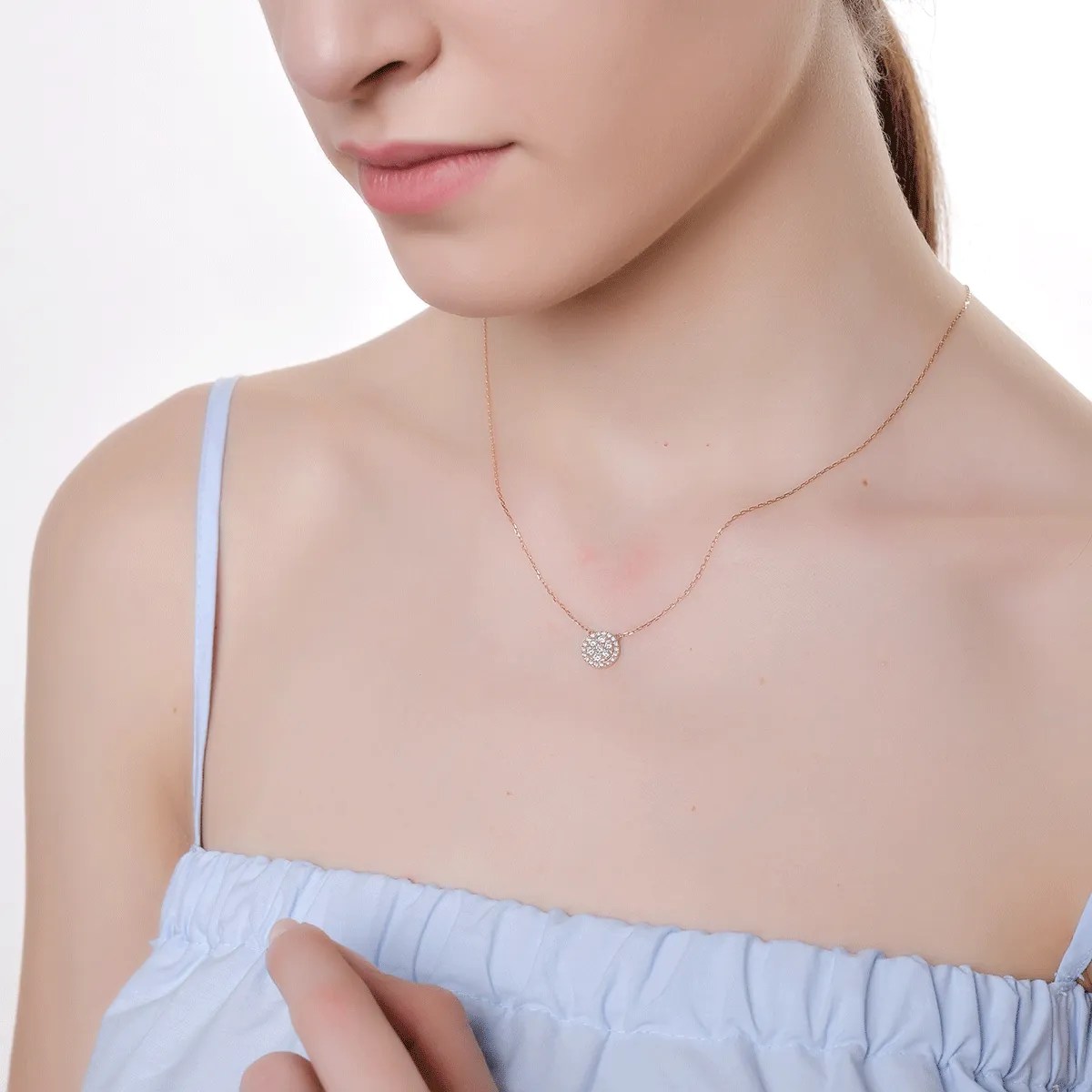 Atrage atenția cu un lanț elegant cu pandantiv din aur roz, înfrumusețat cu diamante de 0.41ct. Finisajul rafinat al aurului roz completează căldura și strălucirea diamantelor.