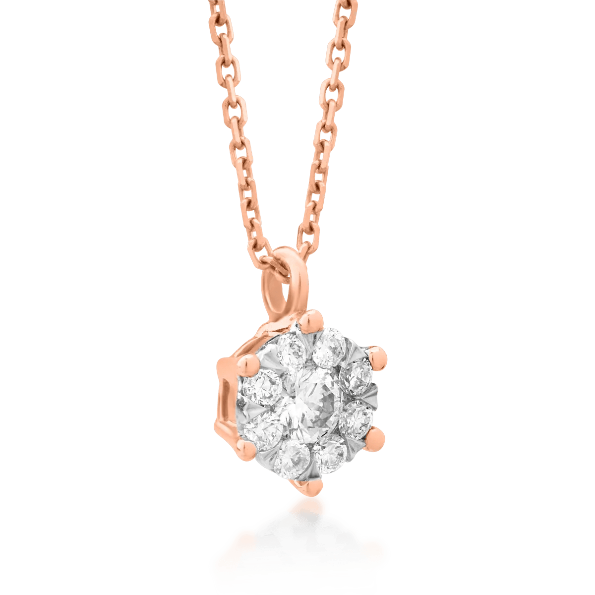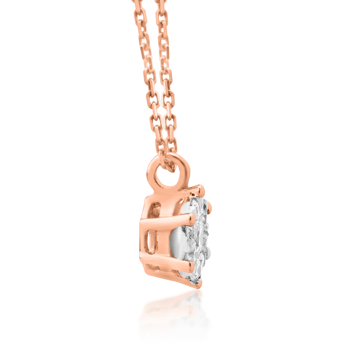 Un accesoriu rafinat, acest lanţ din aur roz cu pandantiv încrustat cu diamante de 0.166ct aduce un plus de eleganţă oricărei ţinute. Cu un design meticulos, îmbină strălucirea aurului roz cu farmecul clasic al diamantelor.
