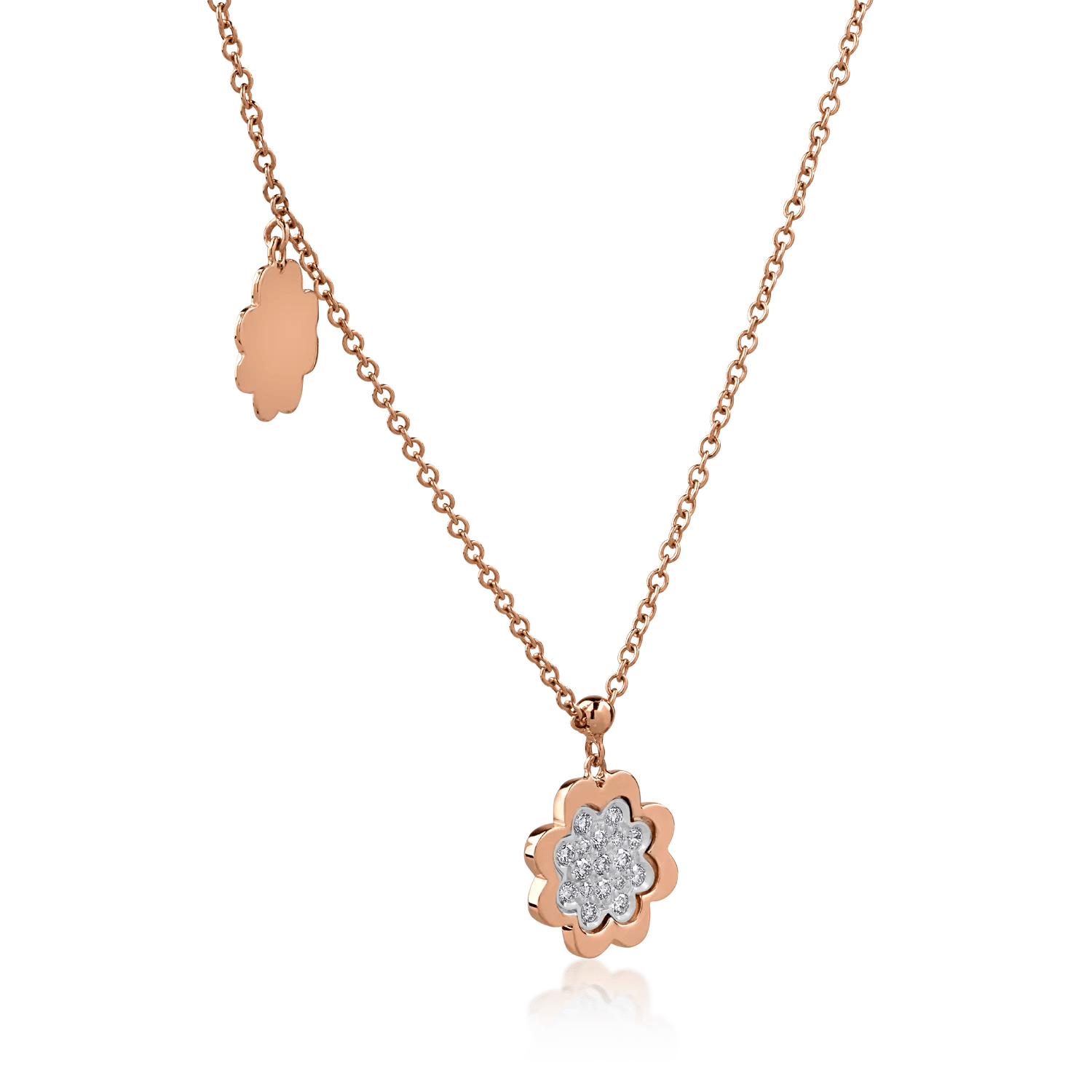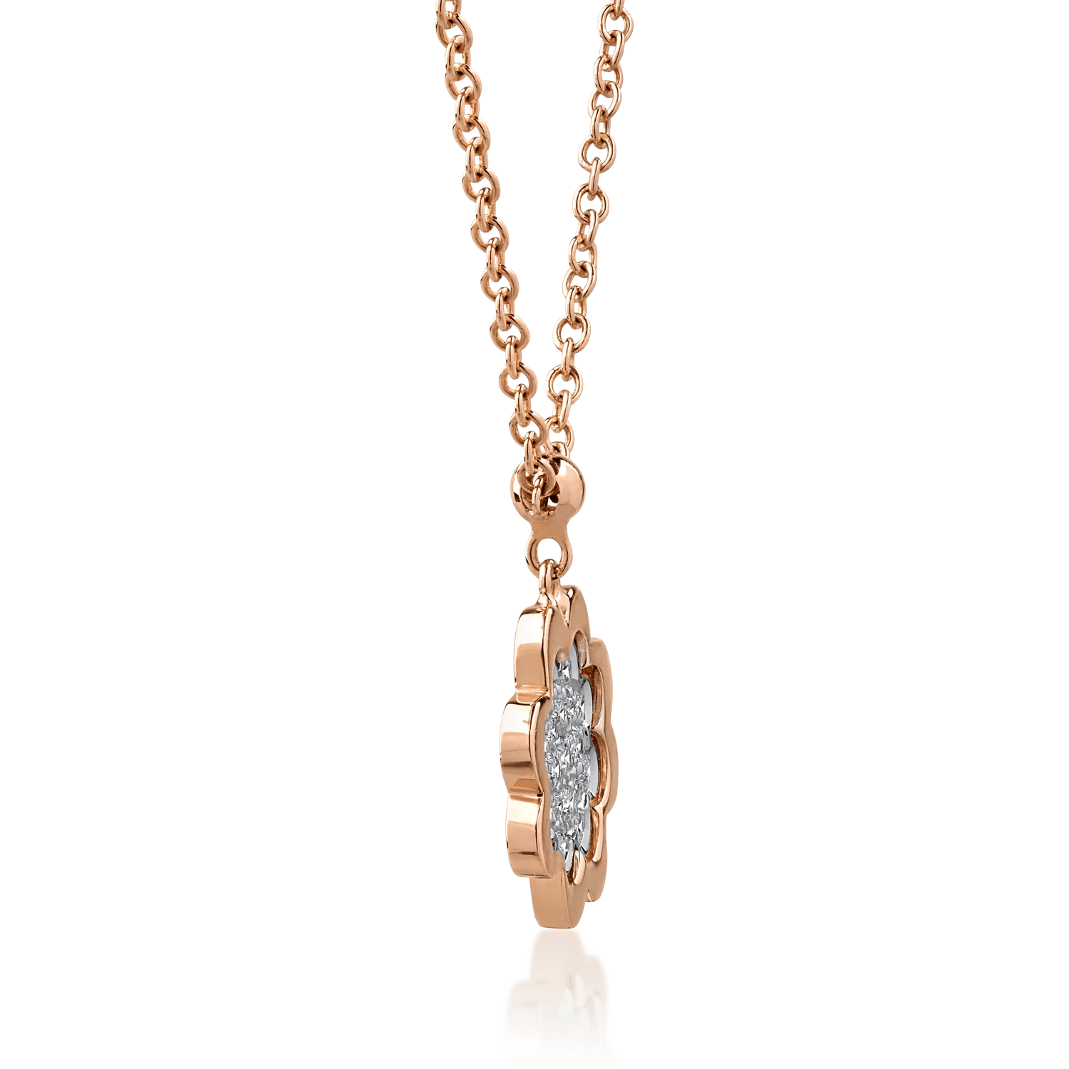 Acest lanț cu pandantiv din aur roz încântă prin designul său rafinat și detalii minuțioase. Diamantele de 0.17ct adaugă o strălucire discretă și sofisticată, completând armonios reflexiile calde ale aurului. Ideal pentru a adăuga o notă naturală de eleganță oricărei ținute, fie de zi sau de seară.