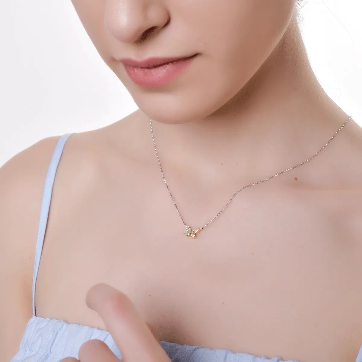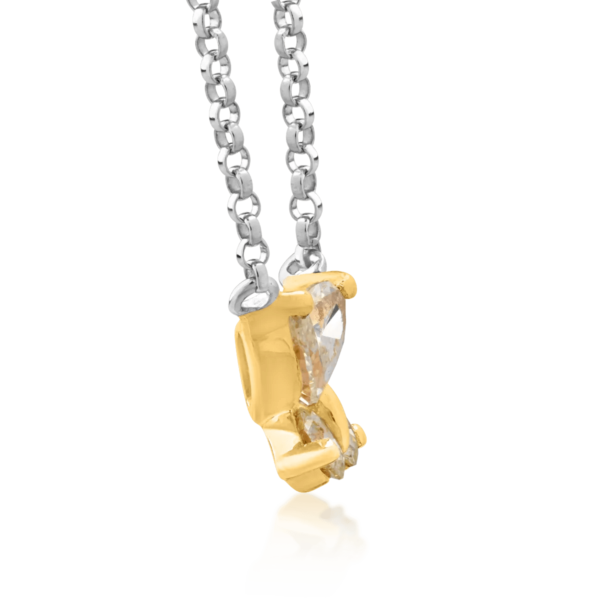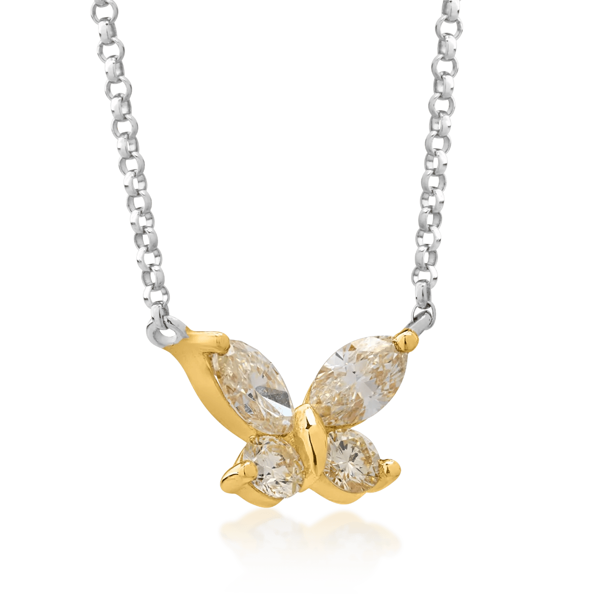 Explorează frumuseţea naturii cu acest lanţ cu pandantiv fluture din aur alb-galben, decorat cu diamante galbene totalizând 0.58ct. Contrastul dintre bicolorul aurului şi strălucirea caldă a diamantelor aduce un farmec aparte.
