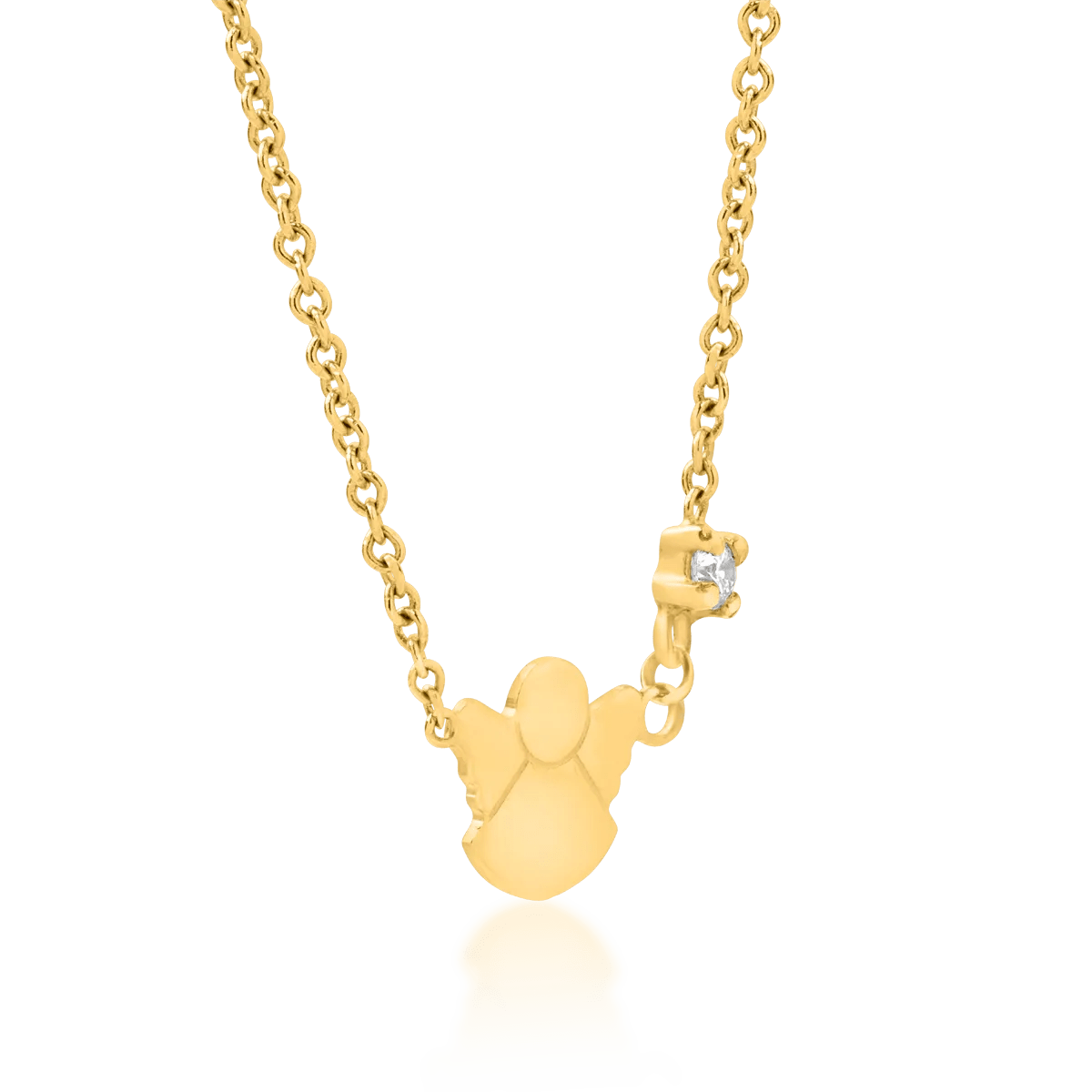 Acest lanț cu pandantiv îngeraș pentru copii este realizat din aur galben și include un diamant de 0.02ct. Reflectând magia copilăriei, bijuteria este creată cu atenție la detalii și oferă o eleganță simplă și pură.