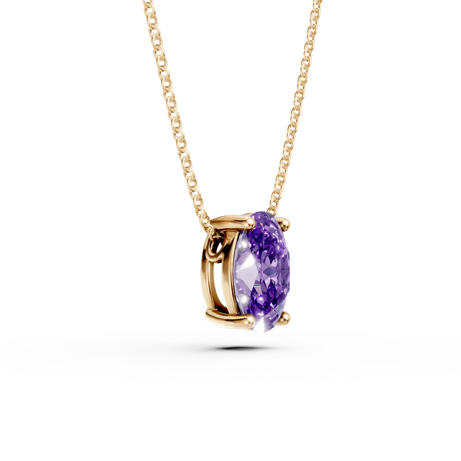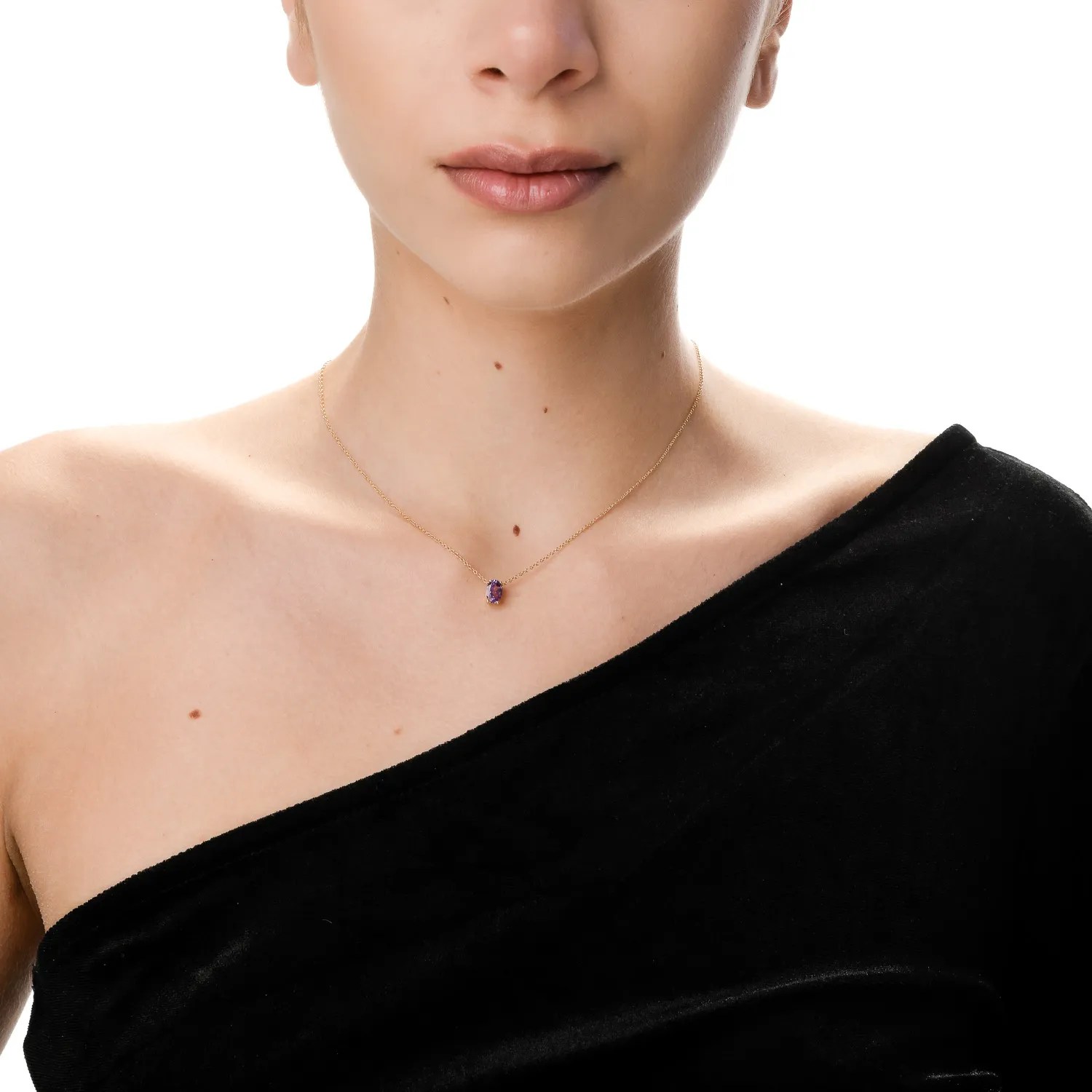Acest lanț cu pandantiv din aur galben, având un design minimalist și un zirconia mov solitaire, poate completa perfect orice ținută. Bijuterie semnată TEILOR, gândită pentru a accentua frumusețea ta.