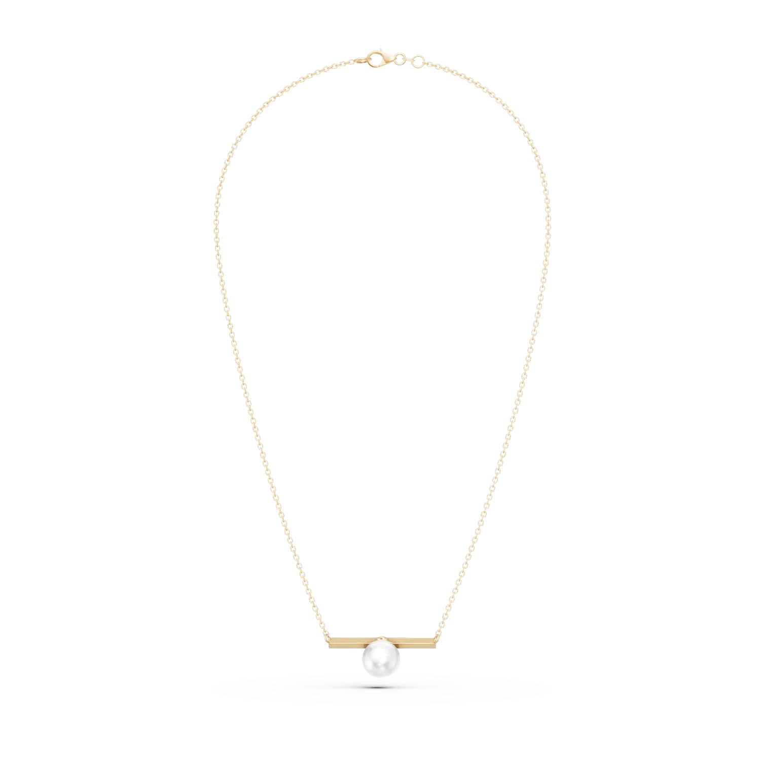 Adaugă o notă de eleganță simplă ținutelor tale cu acest lanț cu pandantiv stilat. Realizat din aur galben, pandantivul minimalist cu perlă sintetică reflectă un echilibru perfect între rafinament și natură. Tonurile aurului scot în evidență strălucirea delicată a perlei, pentru un efect vizual distinct și sofisticat.
