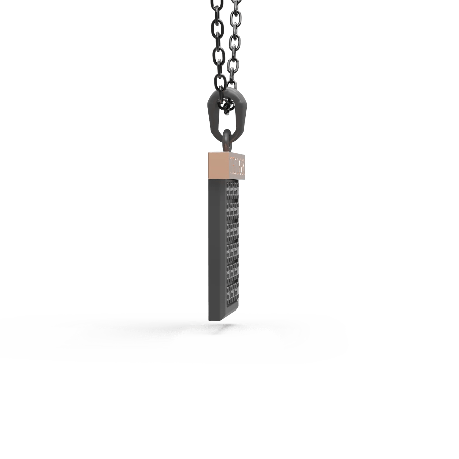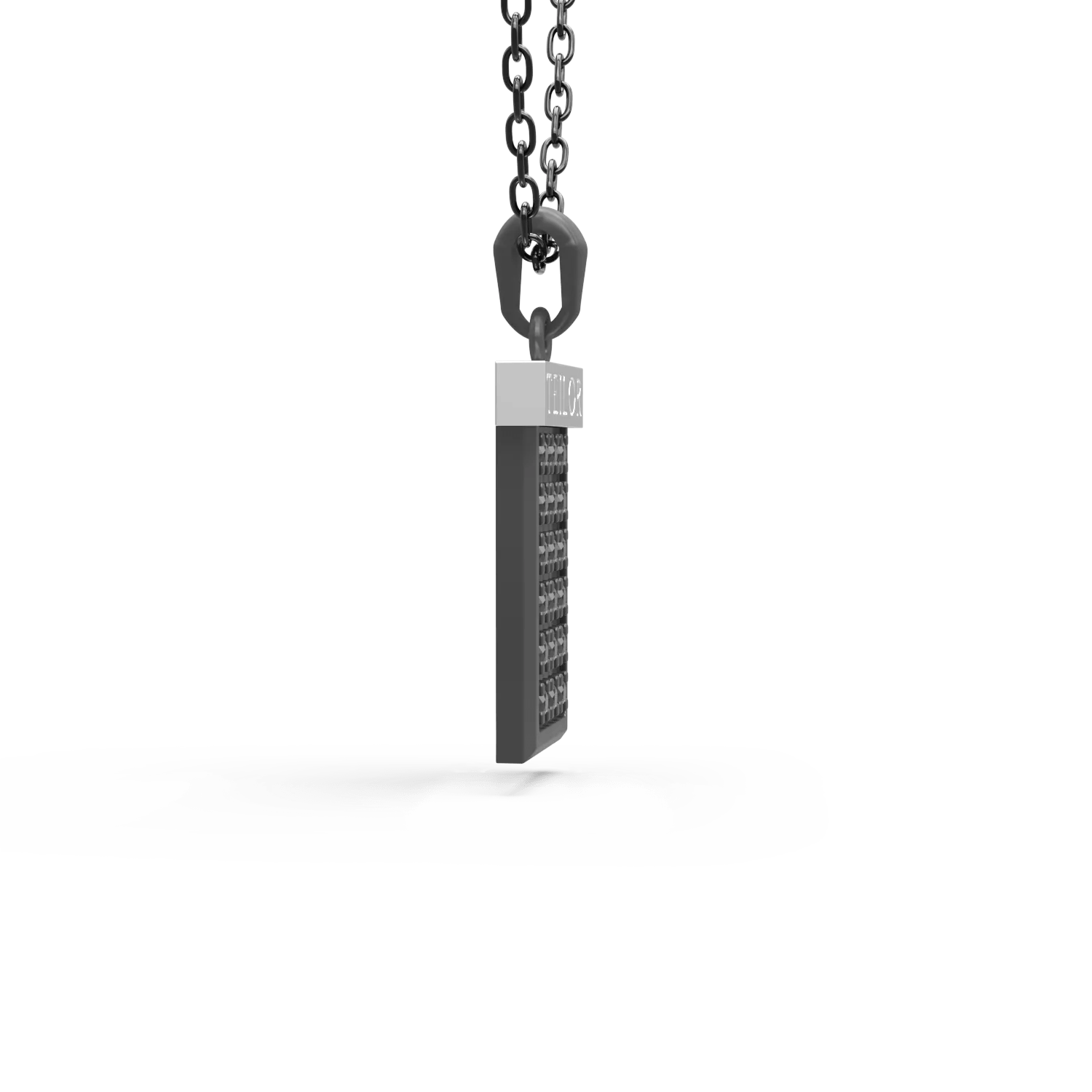 Bijuteriile din colecţia FLIGHT se disting prin detalii captivante. Acest lanţ cu pandantiv, împodobit cu diamante negre, oferă o reinterpretare a eleganţei masculine: titanul adaugă un aer de mister şi duritate, iar aurul alb aduce un plus de rafinament subtil.