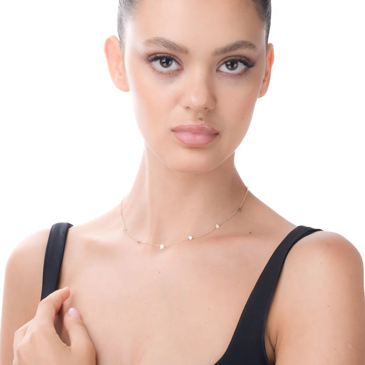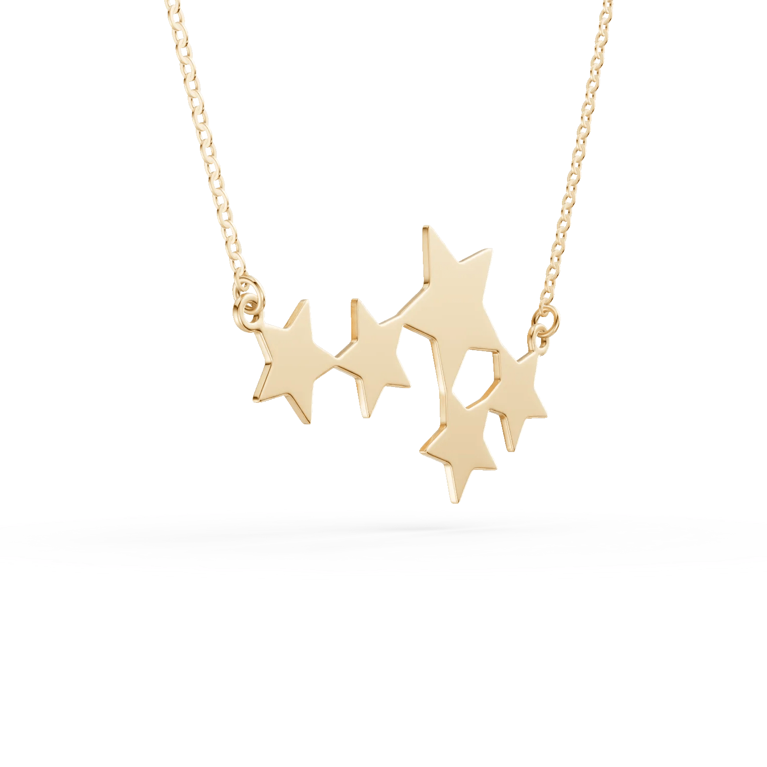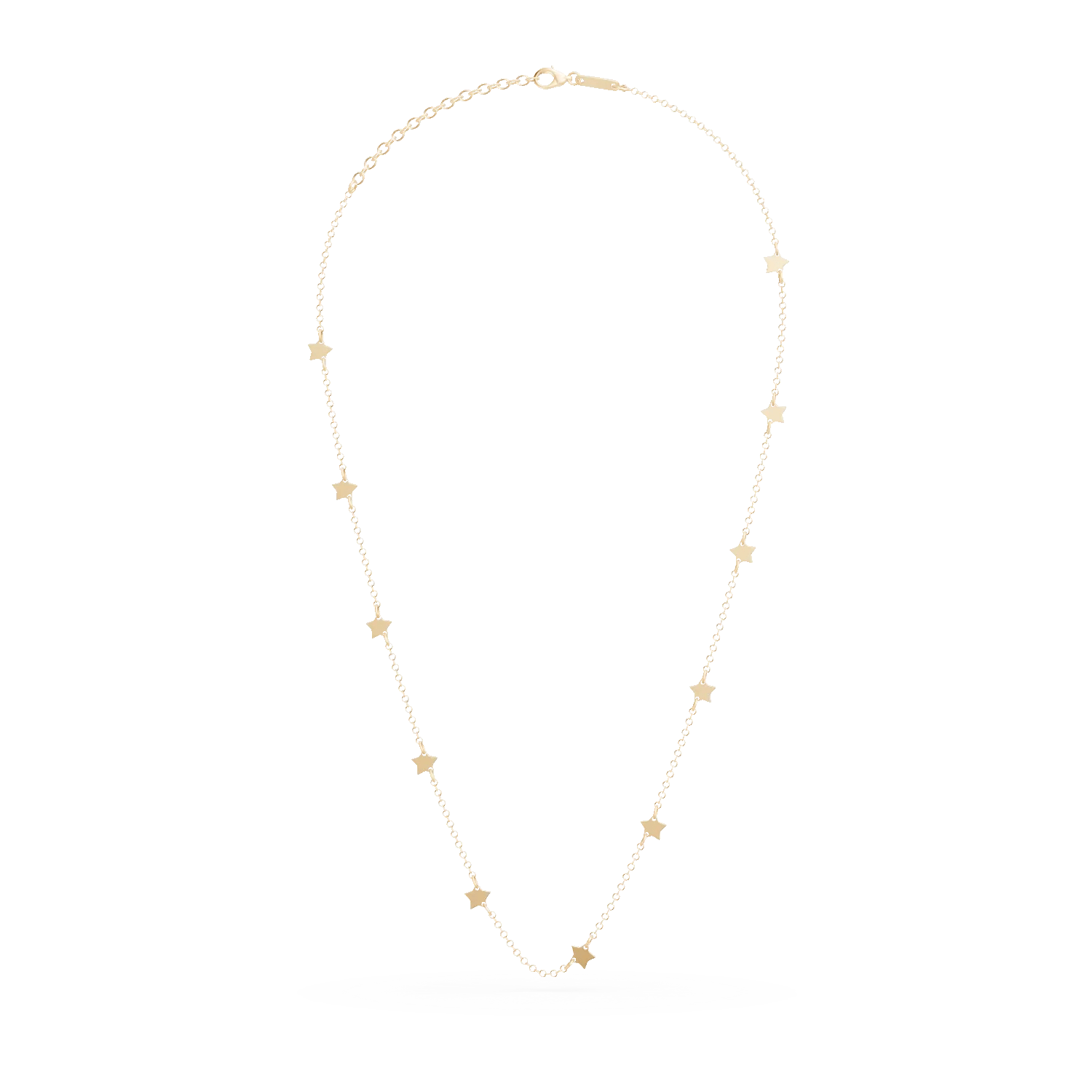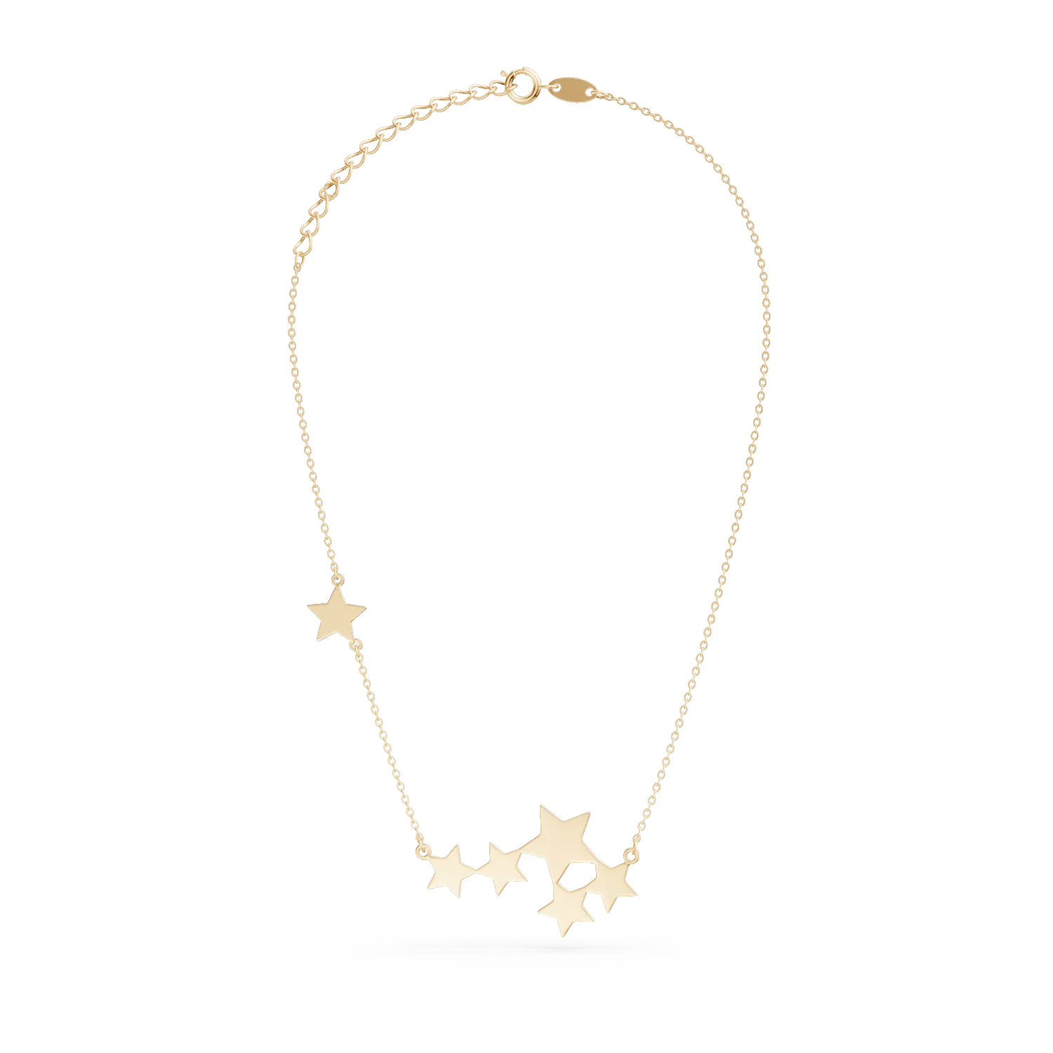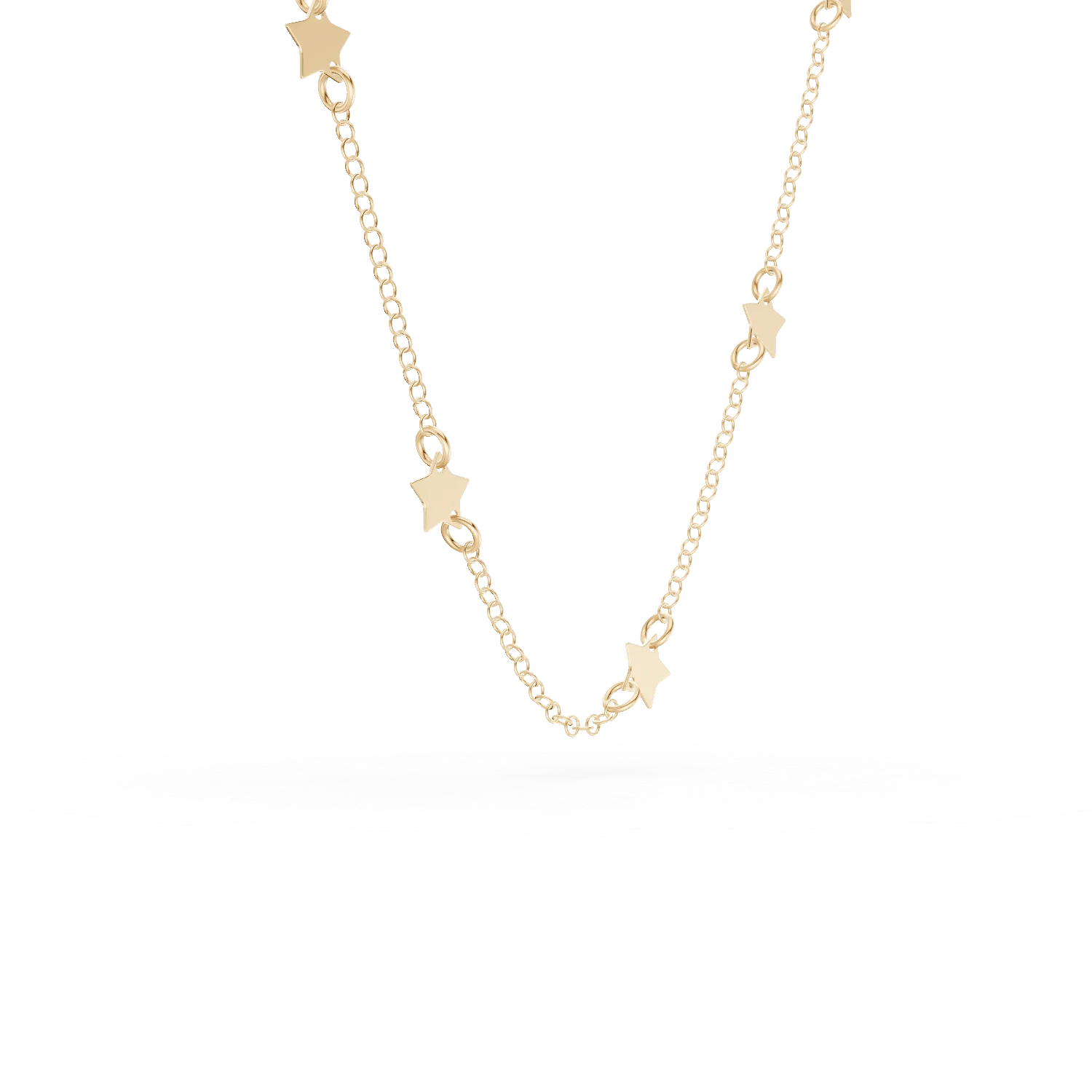 Completează-ți ținuta cu un lanț cu steluțe din aur galben, ce adaugă un farmec aparte. Designul său subtil și simbolic oferă un plus de eleganță fiecărei apariții. TEILOR – experiențe remarcabile.