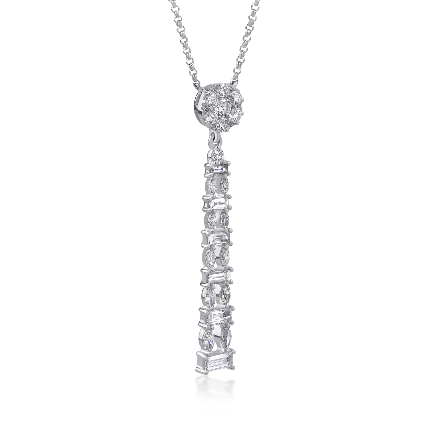 Acest lanț cu pandantiv din aur alb, decorat cu diamante tăiate baguette, marquise și rotunde de 1.17ct, adaugă un efect tridimensional sofisticat. Designul său meticulos echilibrează eleganța și atenția la detalii, fiind ideal pentru orice ținută.