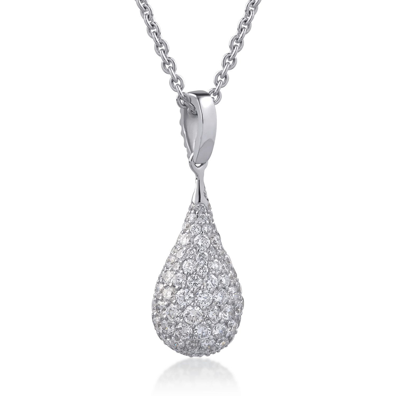 Acest lanț elegant din aur alb, cu diamante de 1.51ct, seduce prin strălucirea rafinată a pietrelor și designul său modern. Pandantivul său atrage atenția datorită finisajului desăvârșit și a jocului de lumini. O bijuterie care îmbină delicatețea cu forța vizuală, ideală pentru a completa cu stil orice ținută.