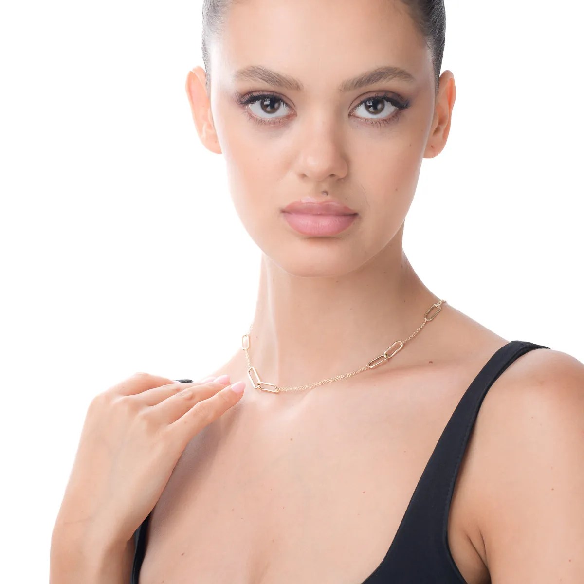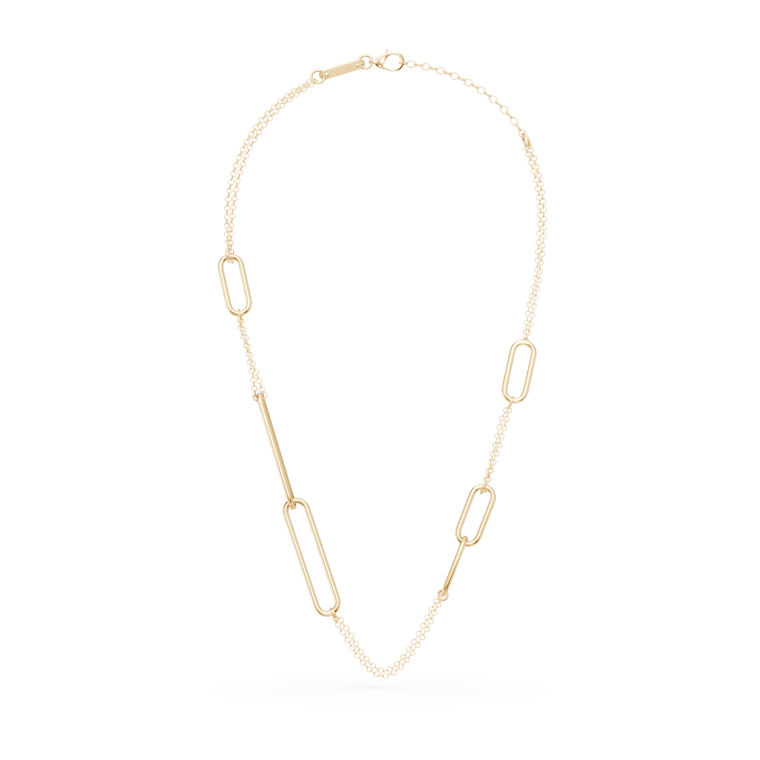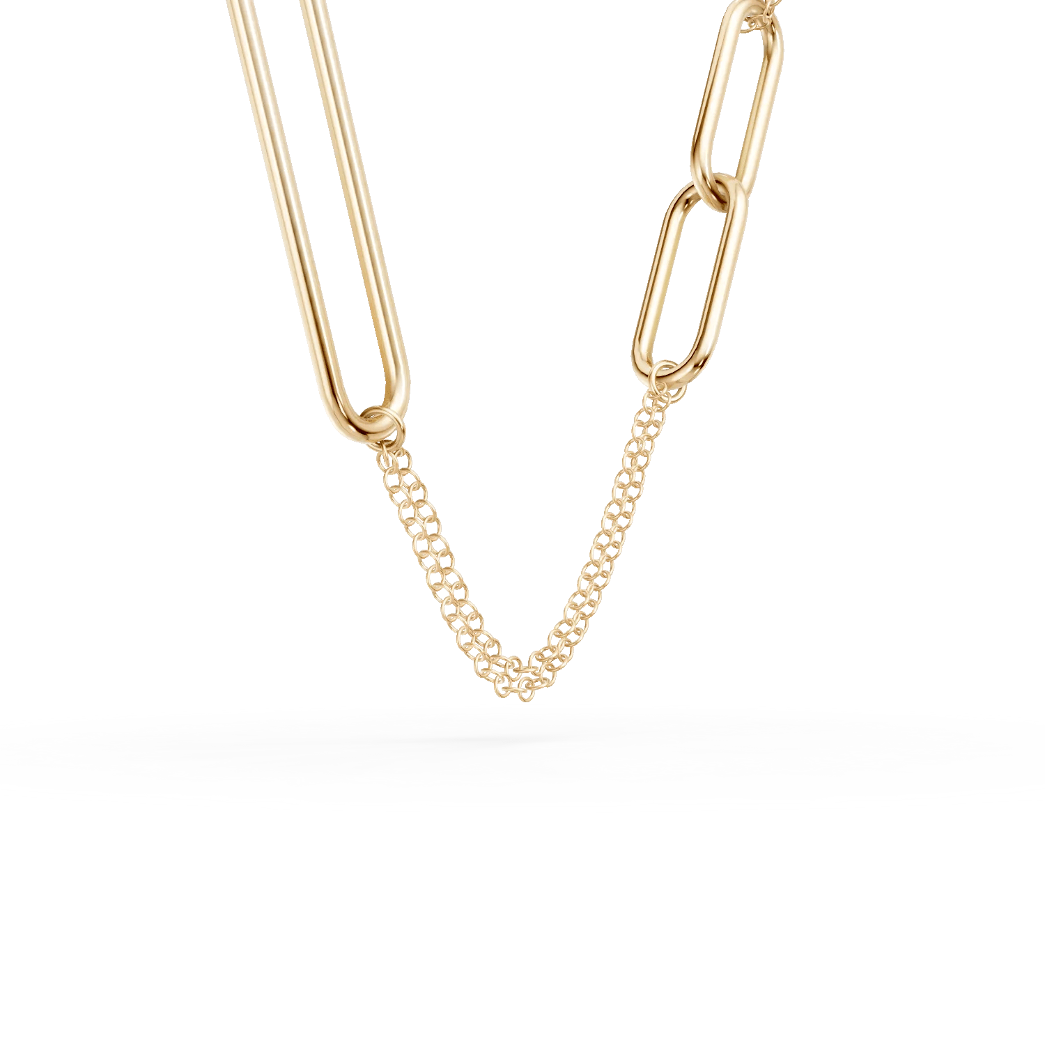 Acest lanț cu detalii geometrice, confecționat din aur galben, este accesoriul ideal pentru a adăuga o notă chic și memorabilă ținutelor tale. Descoperă stilul inconfundabil al bijuteriilor TEILOR.