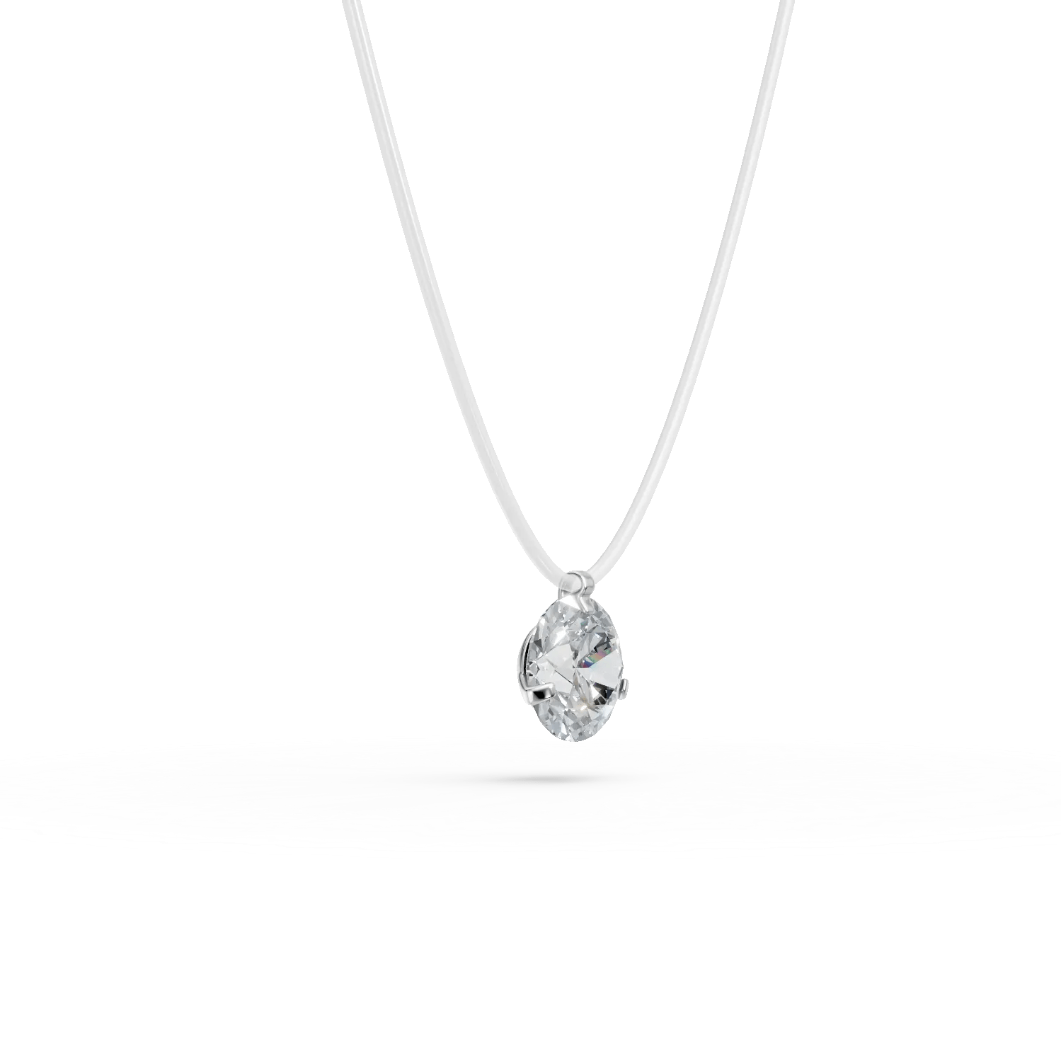 Acest lanț rafinat, cu fir transparent și pandantiv din aur alb și zirconia, este caracterizat de o estetică modernă și elegantă. Contrastul subtil între claritatea zirconiei și nuanța rece a aurului alb creează un efect plutitor deosebit, adăugând lejeritate și rafinament. Un accesoriu versatil, ideal pentru femeia care apreciază frumusețea discretă și stilul atemporal.