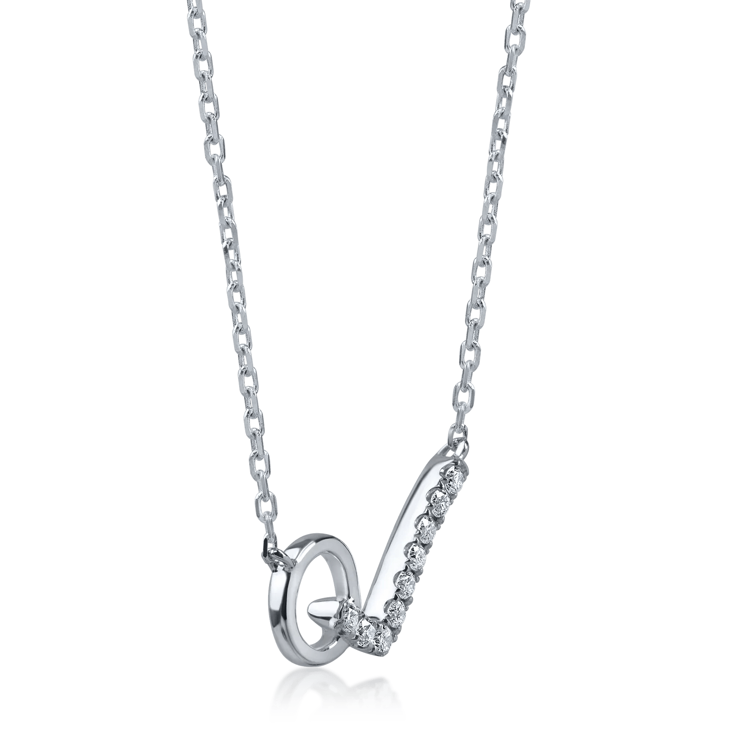 Acest lănțișor cu pandantiv cerc îmbină diamantele de 0.09ct cu aurul alb într-un design minimalist și rafinat. Detaliile fine și echilibrate aduc o notă subtilă de lumină și rafinament. Poartă această bijuterie fie zilnic pentru o eleganță discretă, fie combinată cu alte accesorii pentru un look modern și sofisticat.